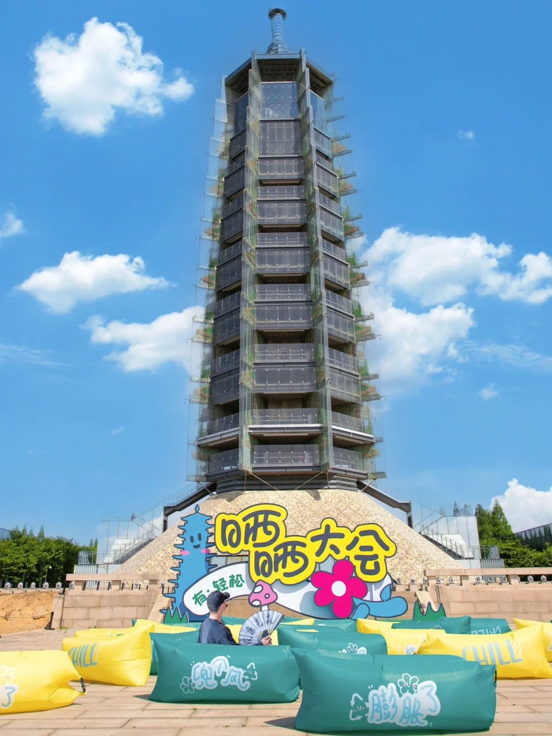 • 五一将会有各种有趣的活 动,也可体验一下四十五度的晒晒 营地,躺着看塔的方式很新颖~记得带小本本来这盖章,五一 限 定 日章挺好看~