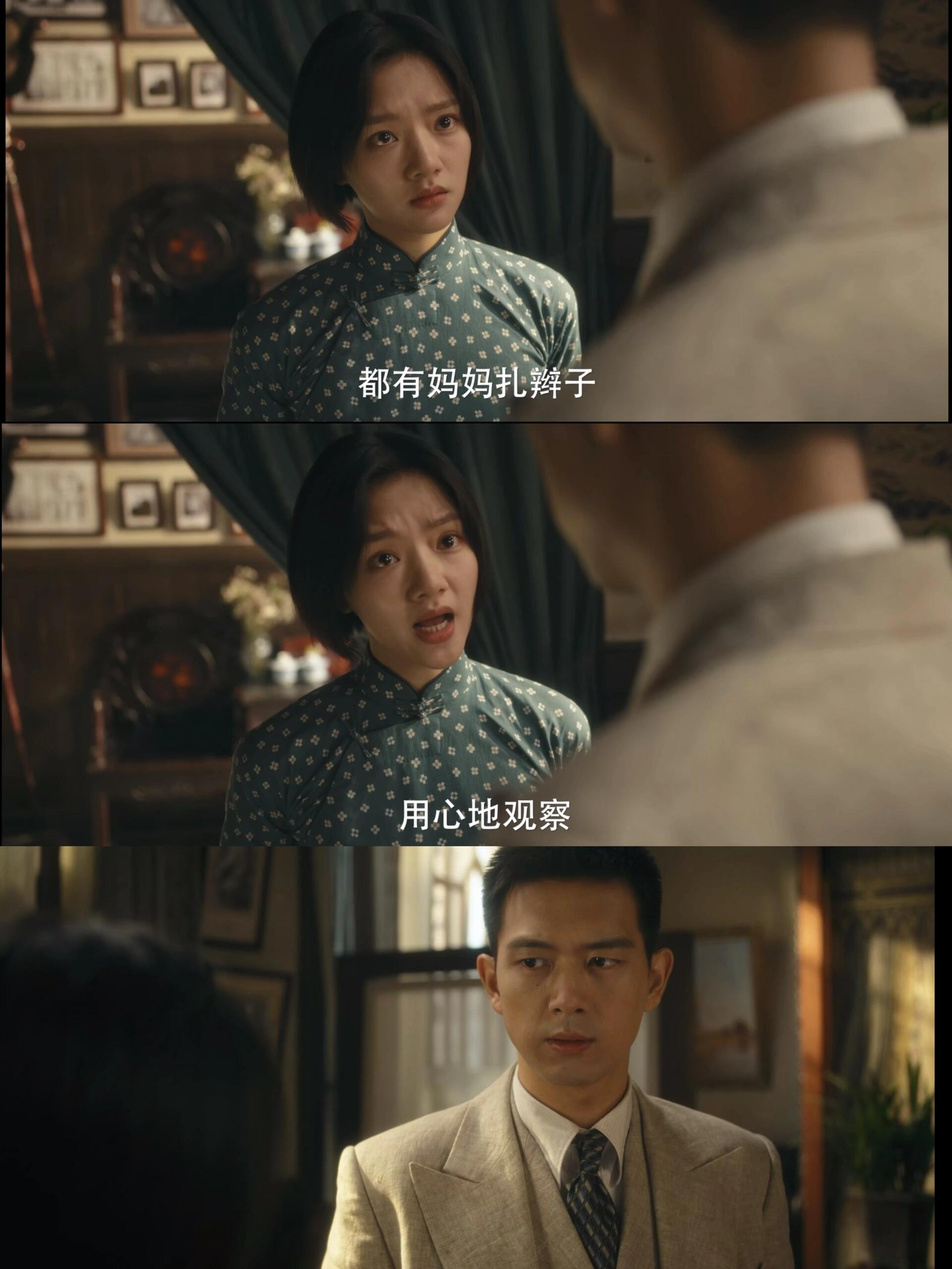但是在正要剪头的时候,秋实想起以前妈妈给自己扎辫子的情景,想念父母了,表示不想剪,正在犹豫的时候,碰巧遇到上街买菜的骆珉敏。