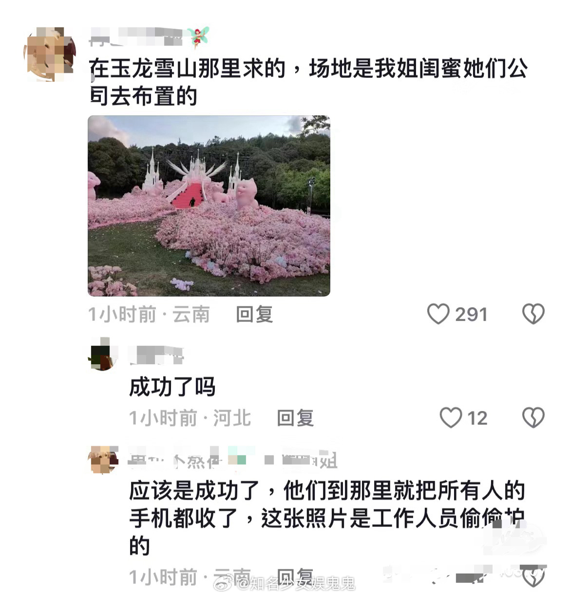 黄子韬求婚徐艺洋现场曝光!黄子韬真的超爱!在玉龙雪山上!求婚现场布置了粉色花的海洋~花上面的小动物都是徐艺洋的小宠物! 黄子韬到时候不会回应还是这么嘴硬吧:同事之间求个婚怎么了[傻眼]