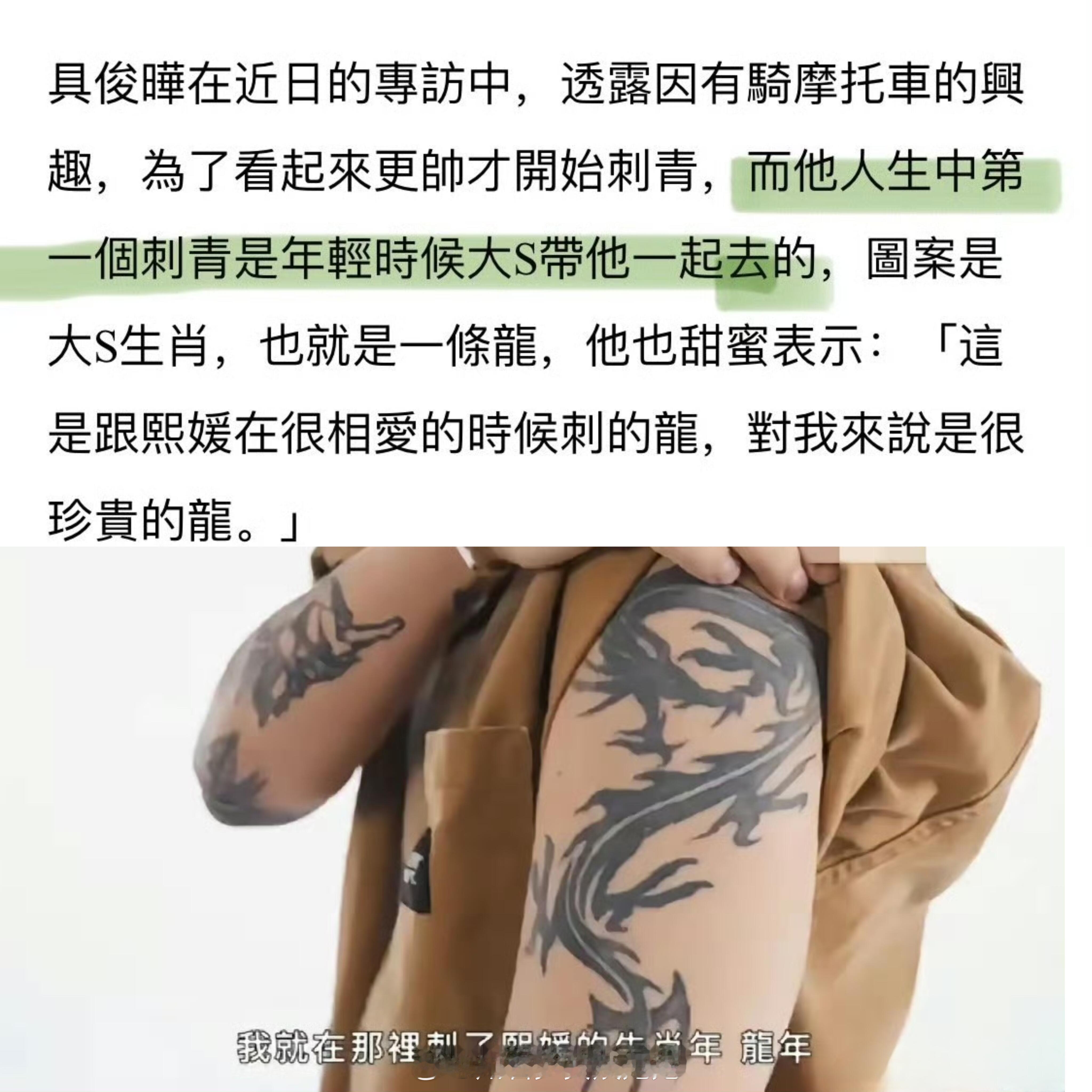 具欧巴接受媒体采访,大谈自己每一处文身的来历!他把大S的生日、生肖、星座、英文名、中文名……全都纹在了身上,他说,这一辈子是抹不掉的,代表对大S的爱!