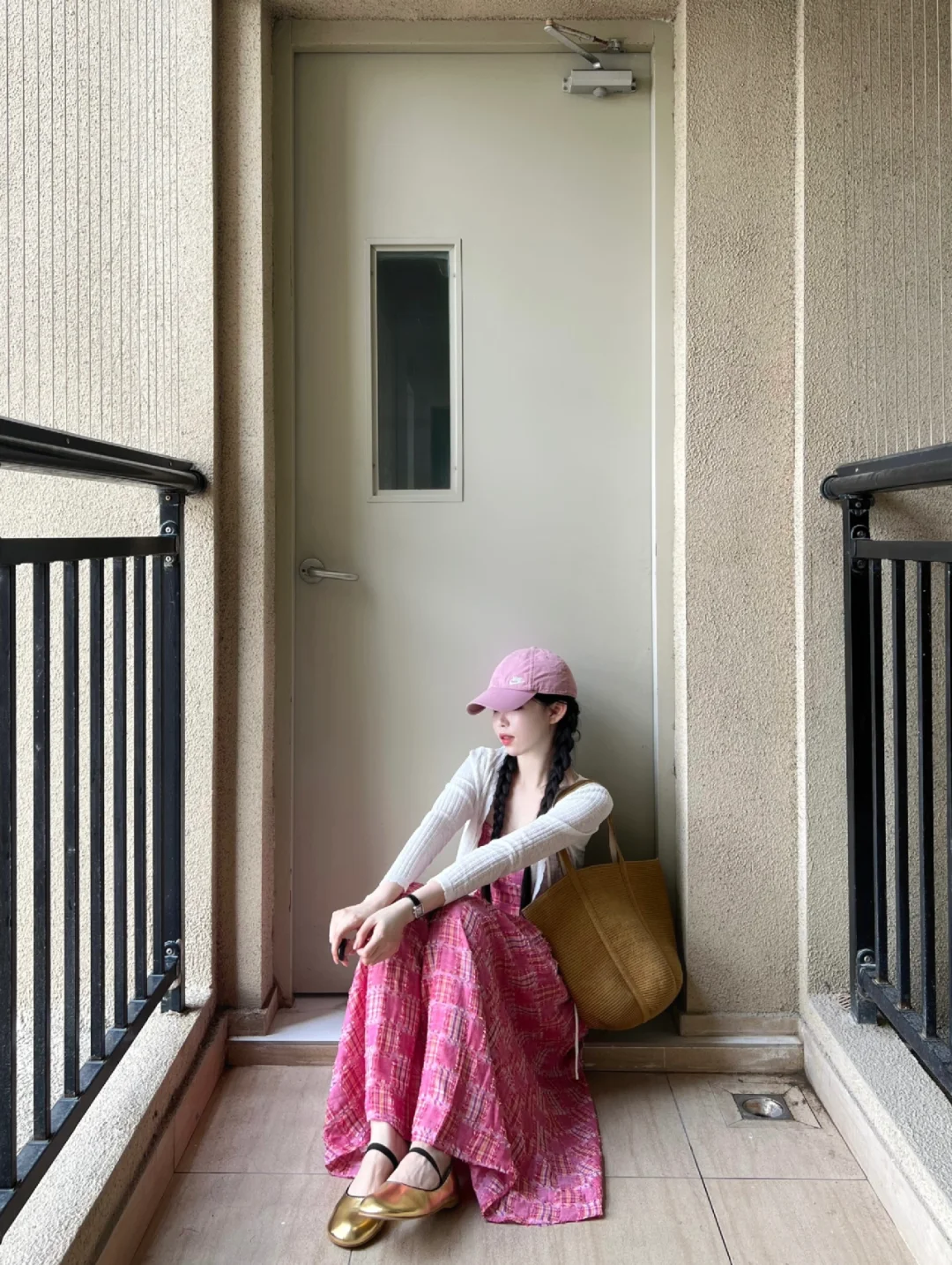 白色飘带开衫➕粉色连衣裙!太明媚了!