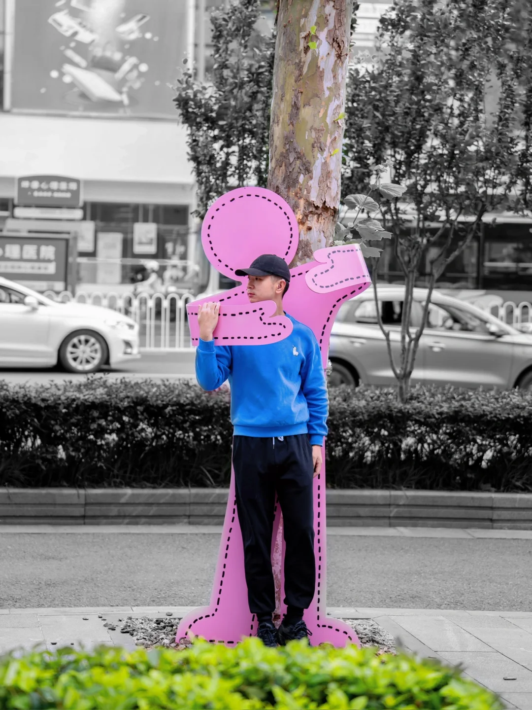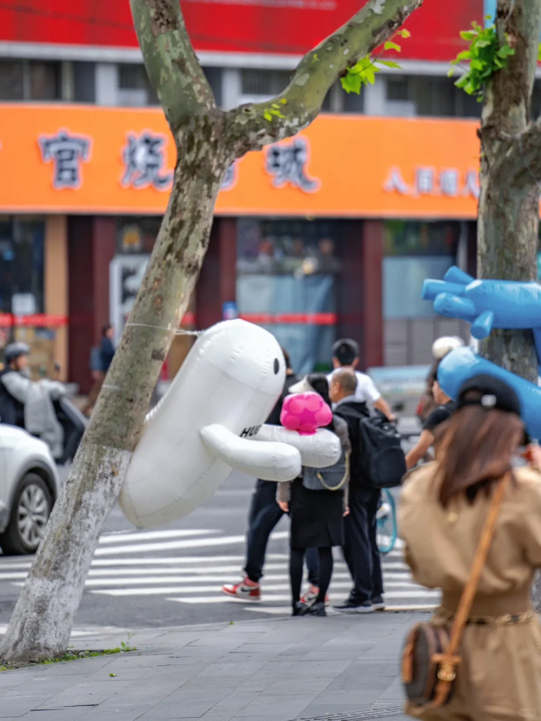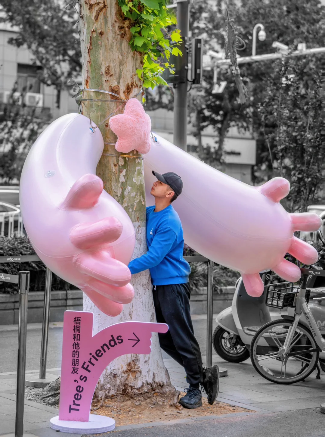 这个街道的每棵梧桐树都穿上各式各样“衣服”~每一棵梧桐的拥抱姿势都不一样,创意又可爱~