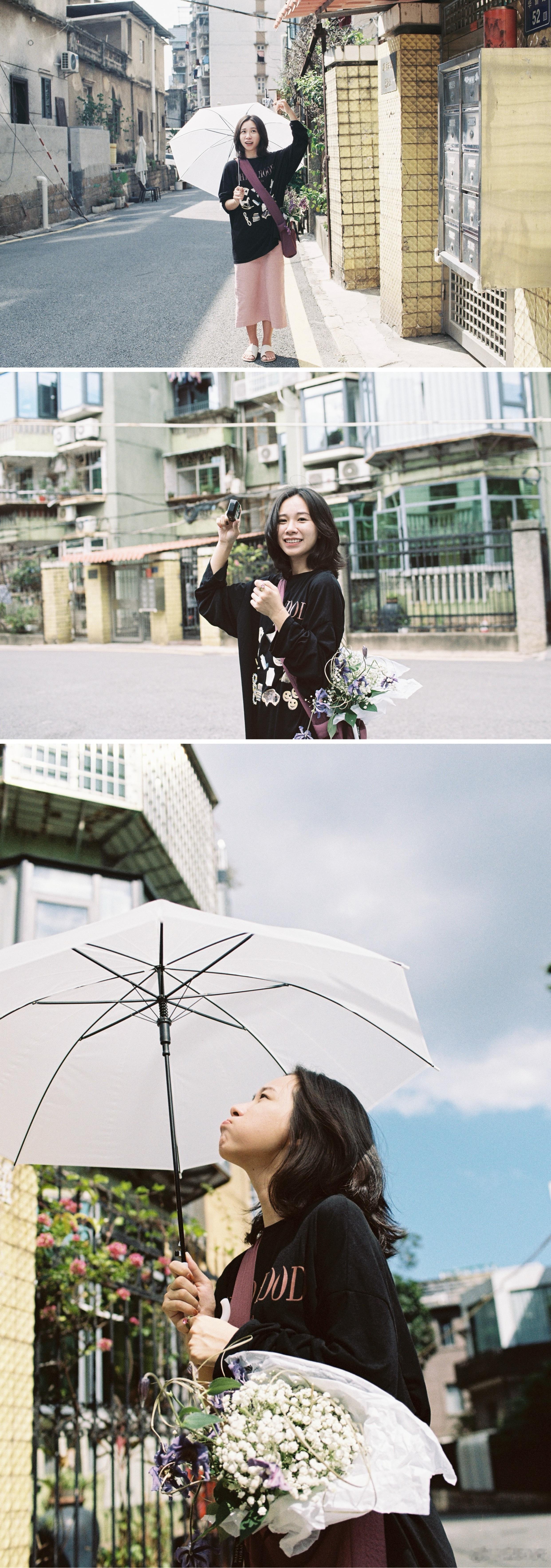 拍客片途中遇到暴雨,客妹心态也很好,我们俩索性就“那拍点下雨吧!” 然后她还给我