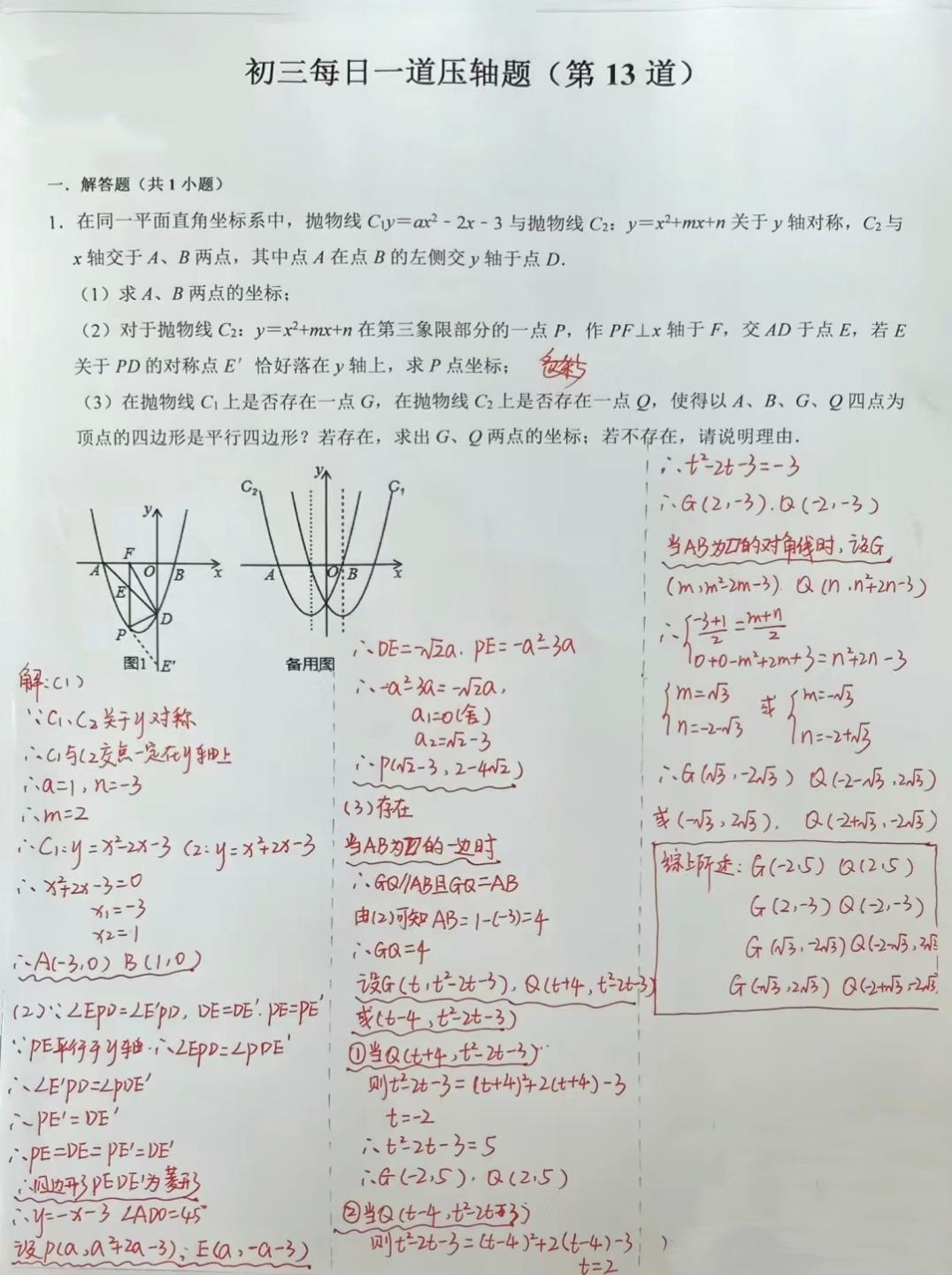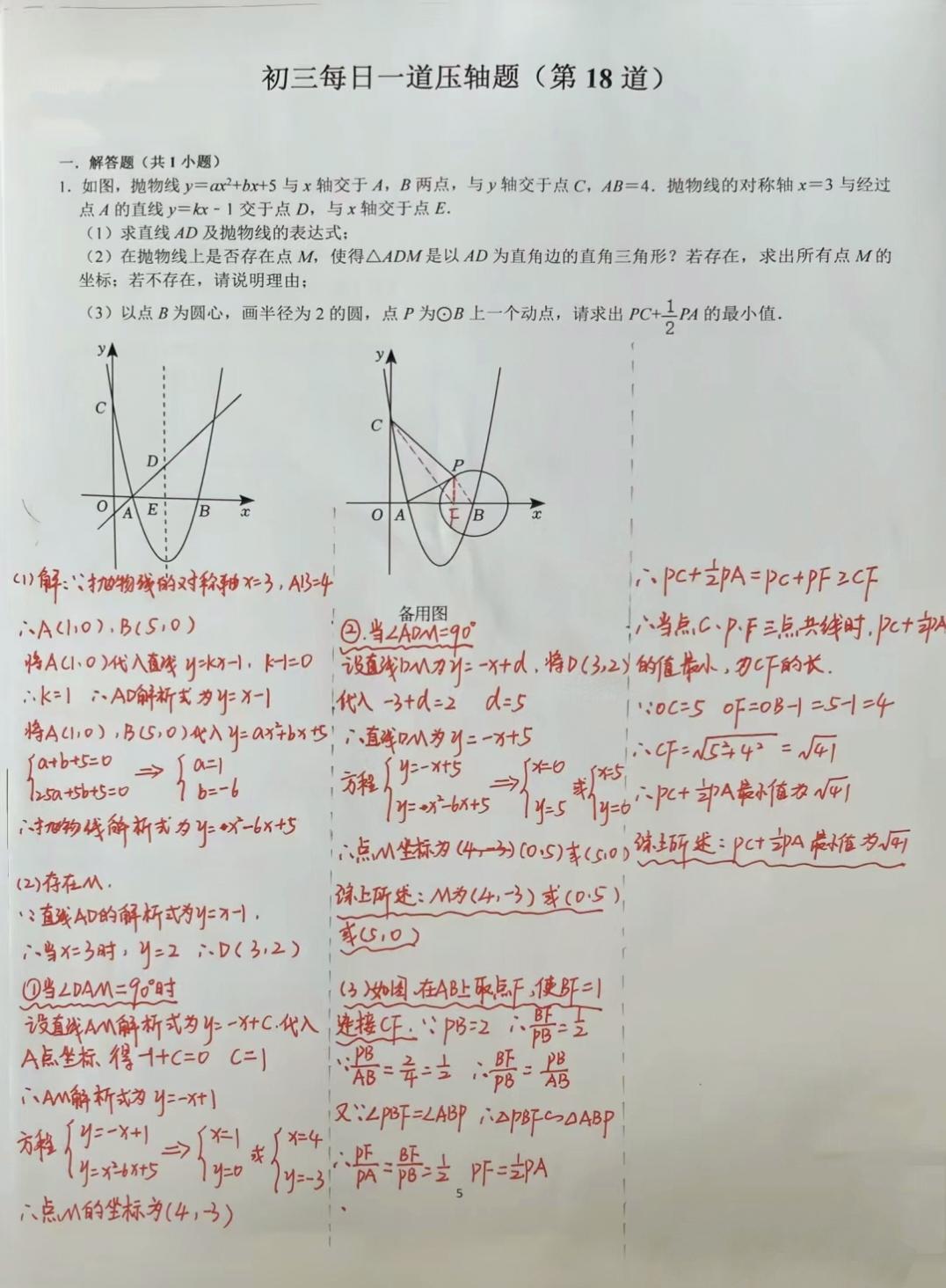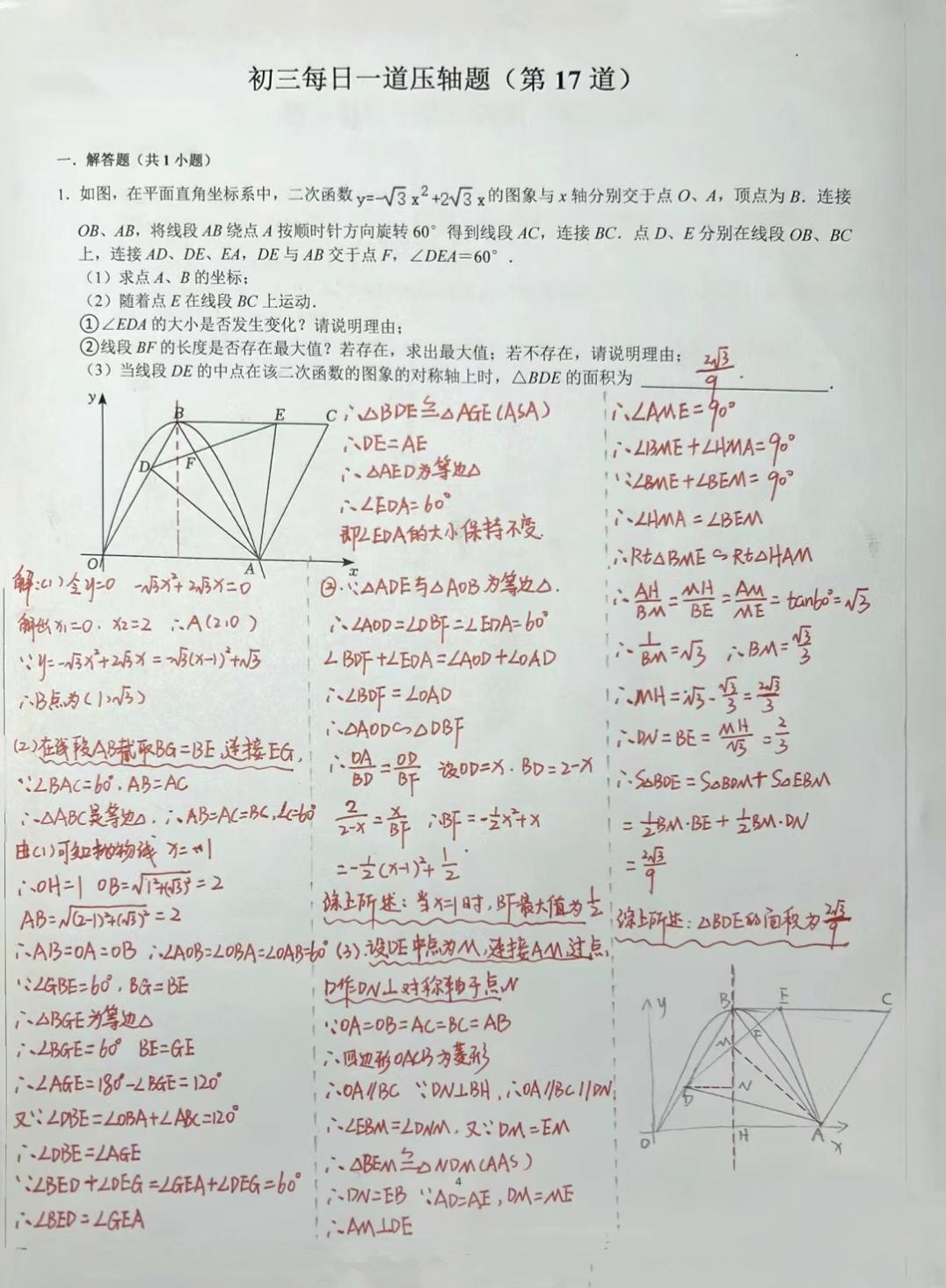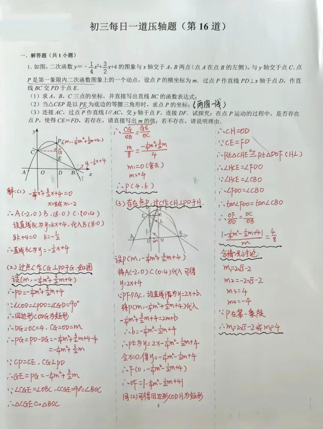 初三数学压轴真题整理,根据我的解题步骤来思考答题思路