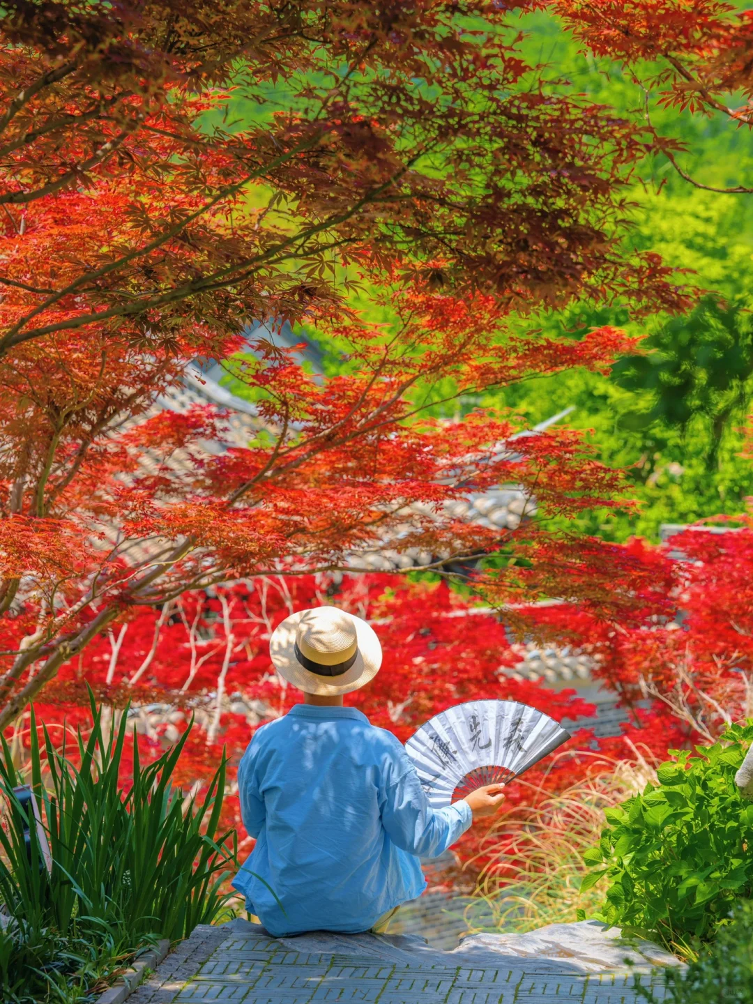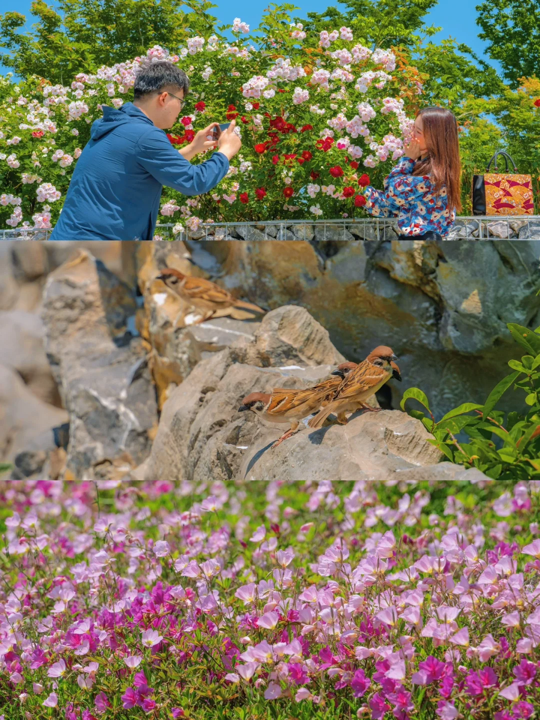 天气好好的,阳光柔和,嫩绿的树叶、翠绿的草地、玫红的枫叶…还有色泽鲜艳的杜鹃花、月见草、蔷薇…漫山遍野,层林尽染,美到窒息~