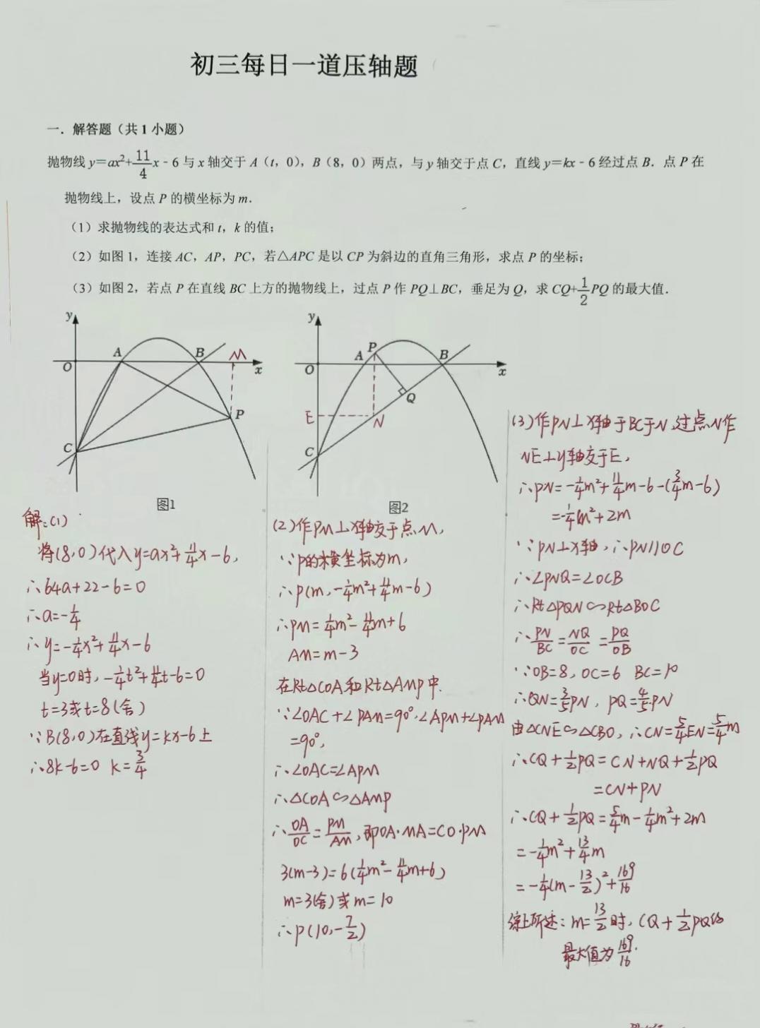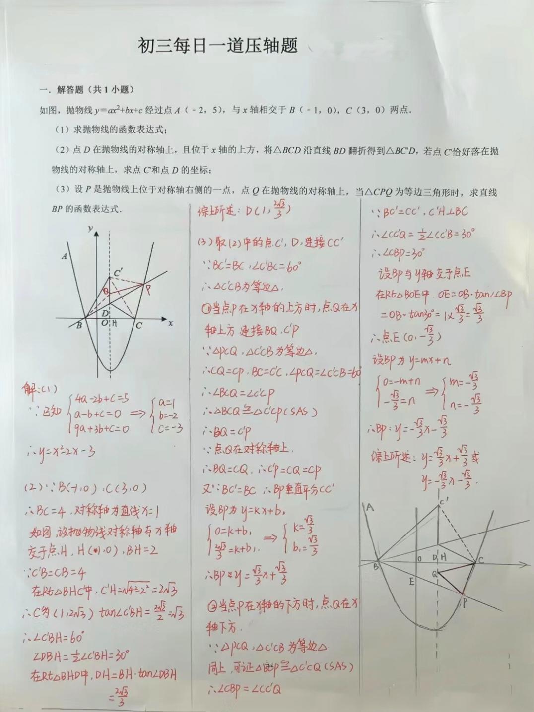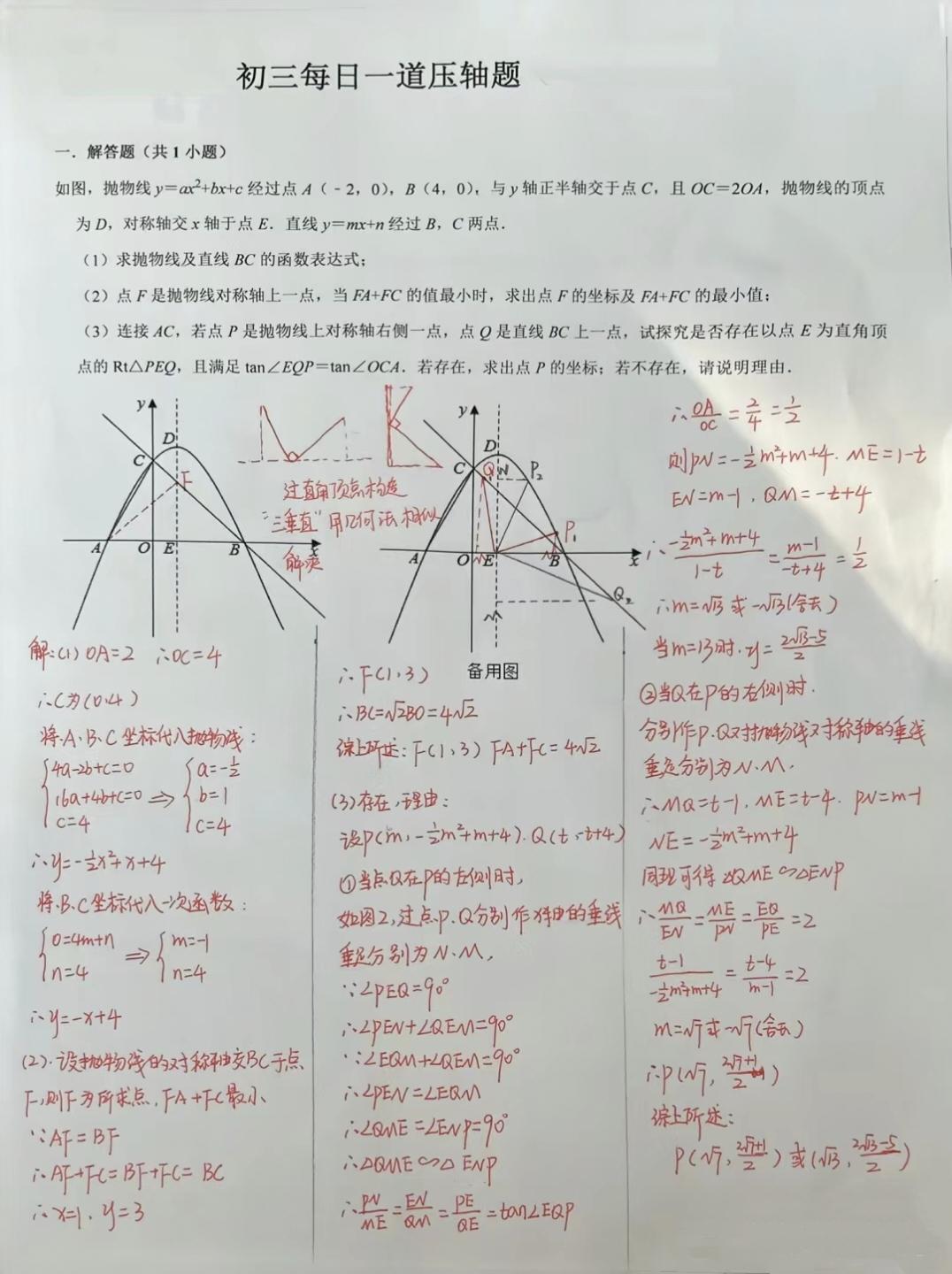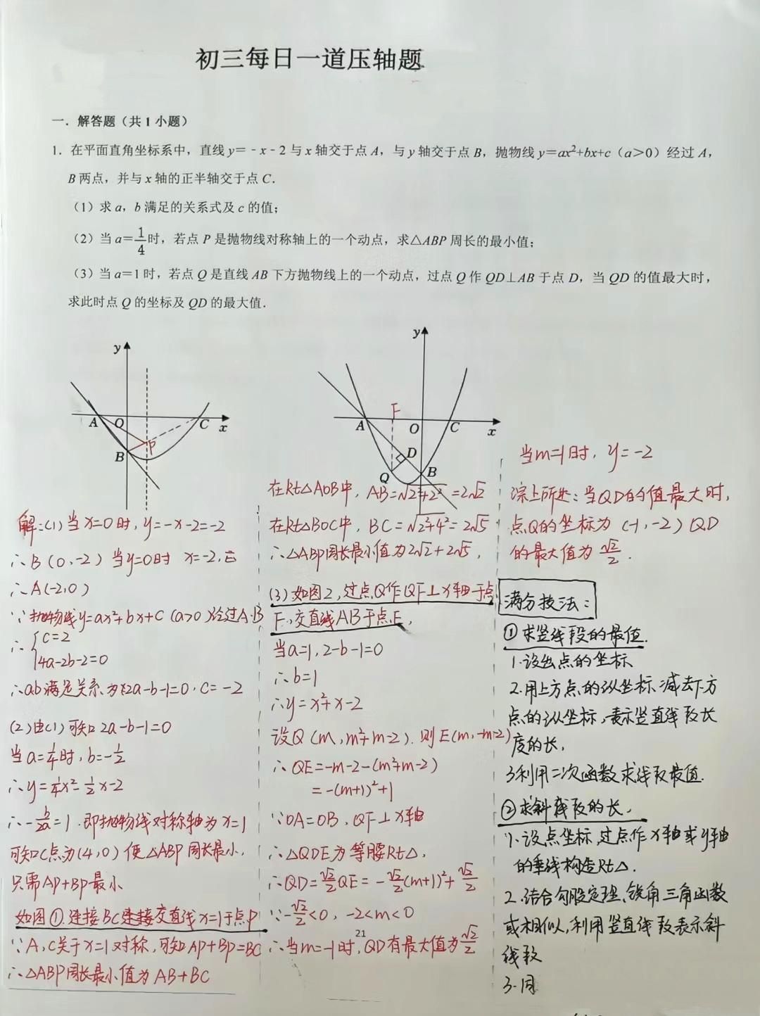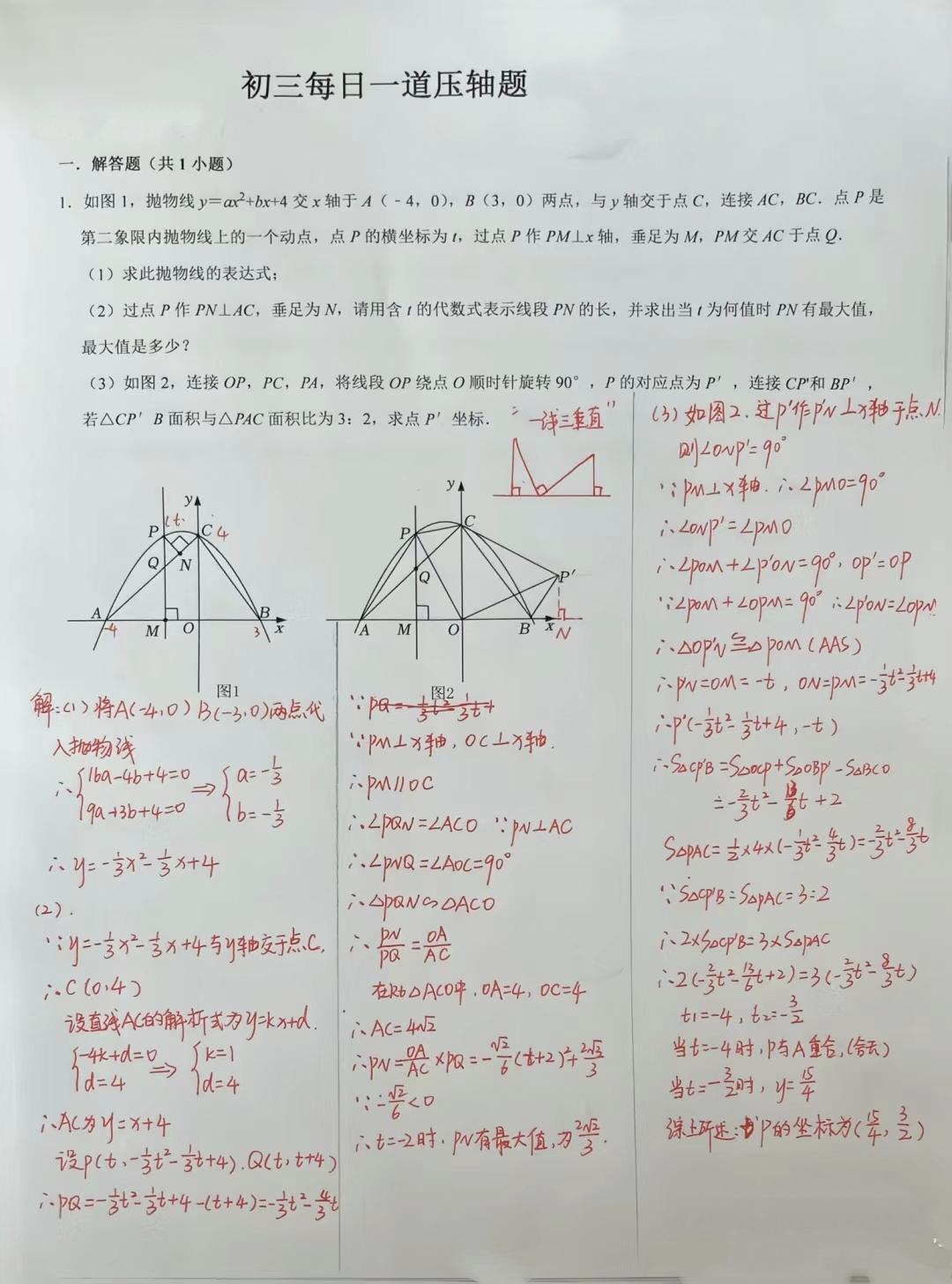 初三数学压轴真题解析