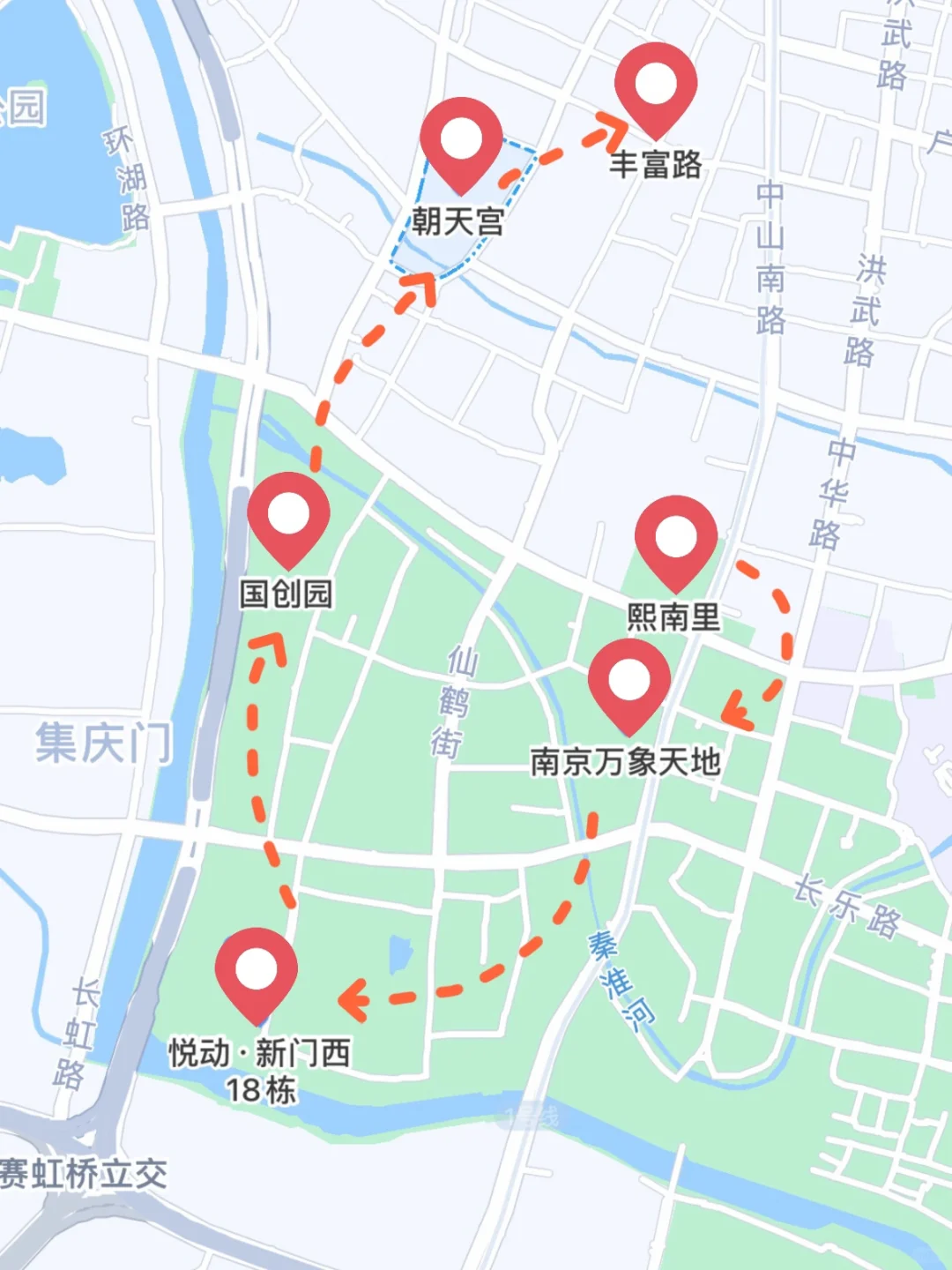 地铁1号线三山街站➠熙南里➠悦动新门西产业园➠国创园➠朝天宫➠丰富路