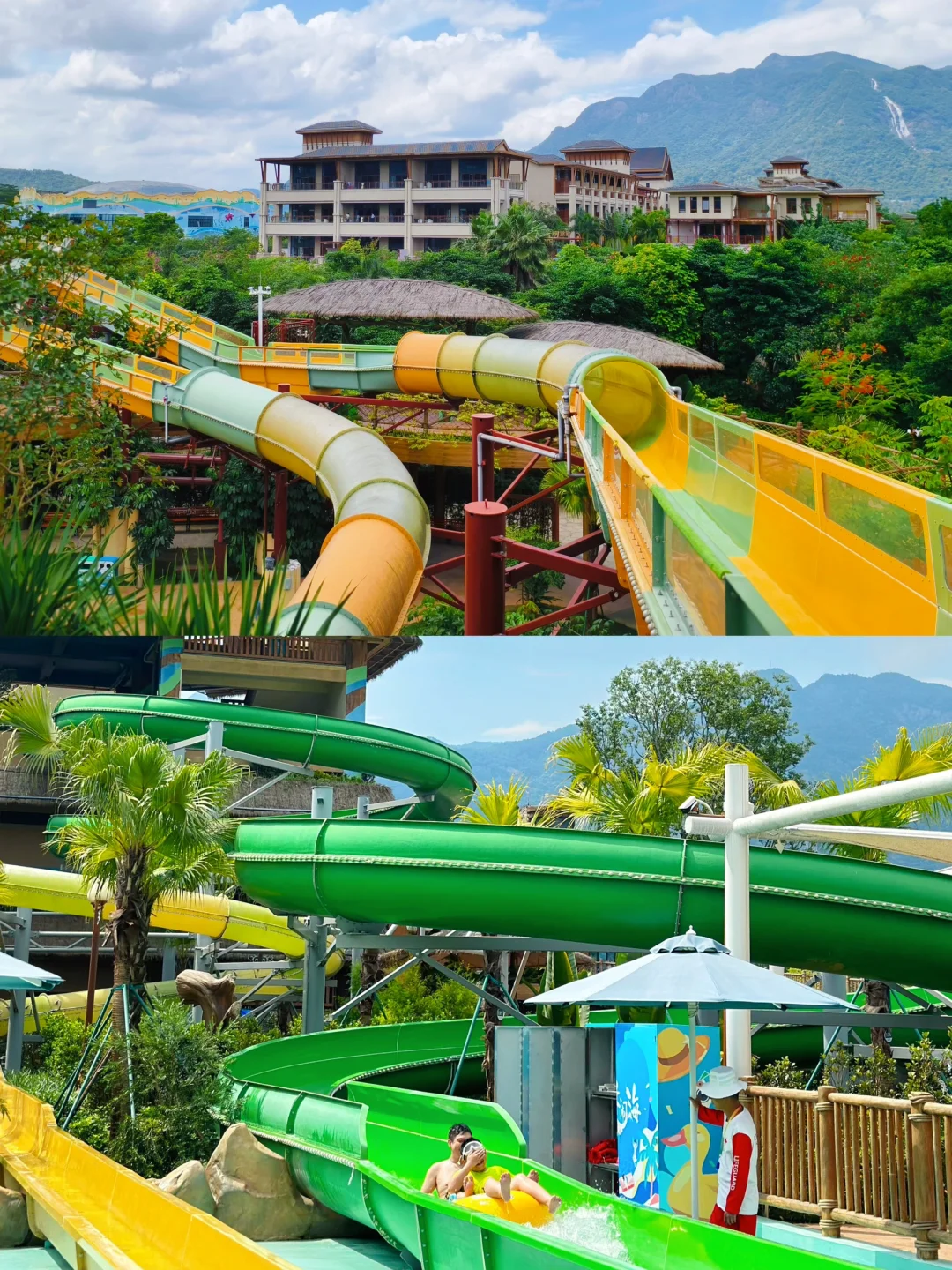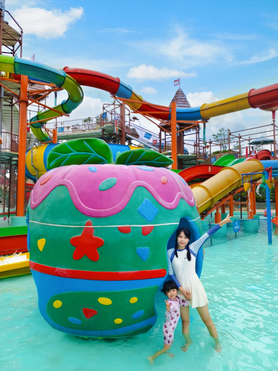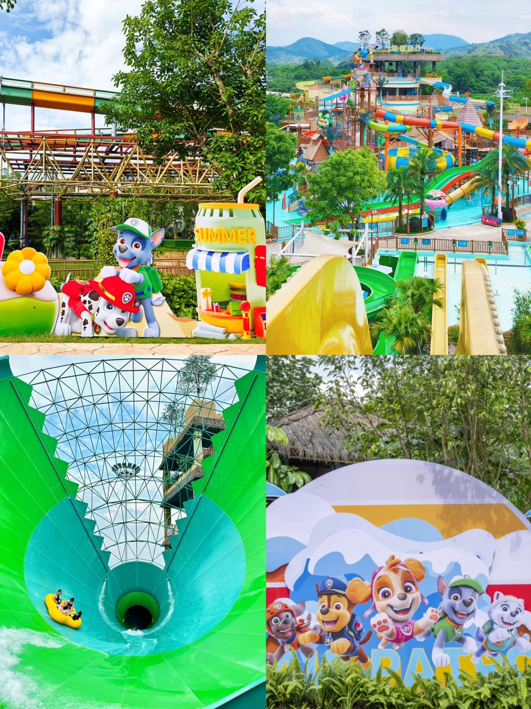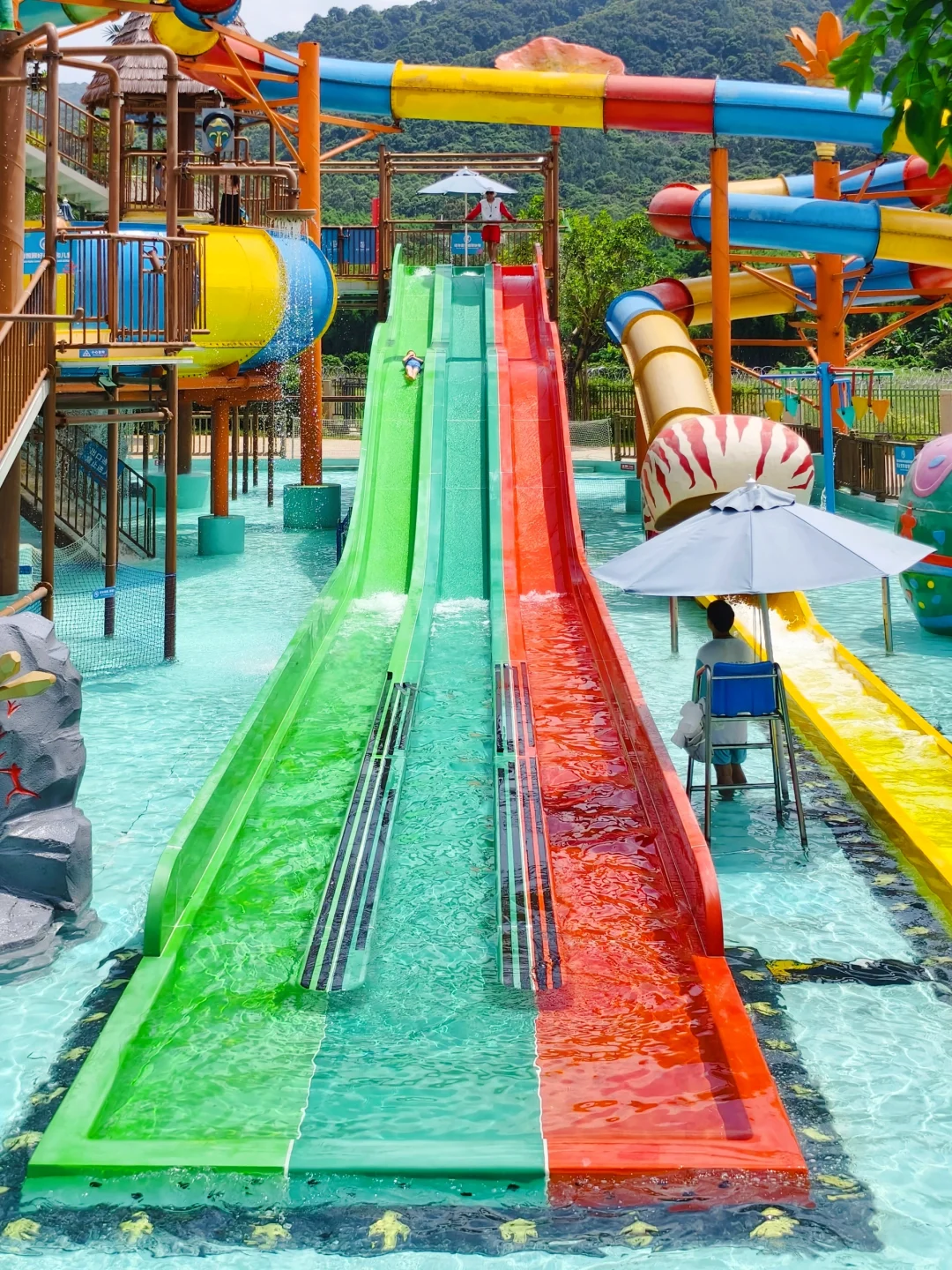 🔴水上过山车:全长570m,跨越半个园区,平稳很适合带大宝一起玩(在换洗区二楼出来,就是空中栈道,可以很快穿梭到排队处)还有大喇叭、魔力碗📣满足爱C激的朋友