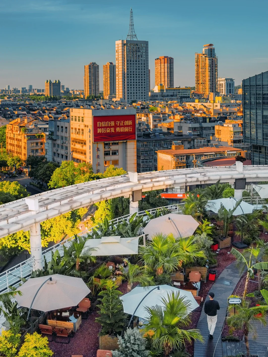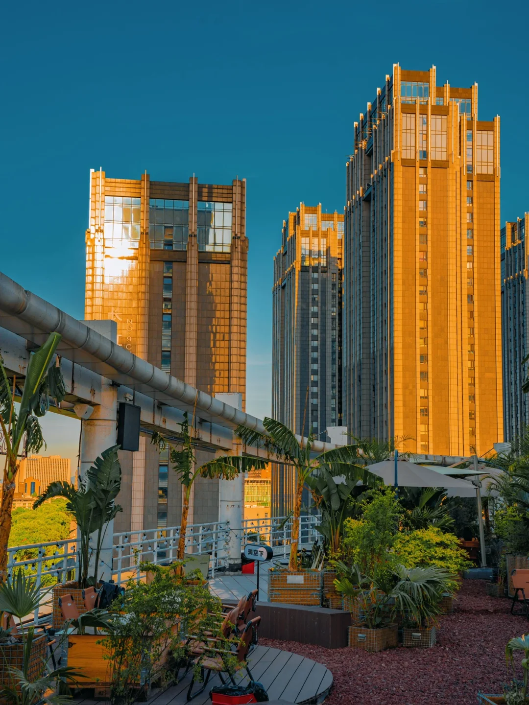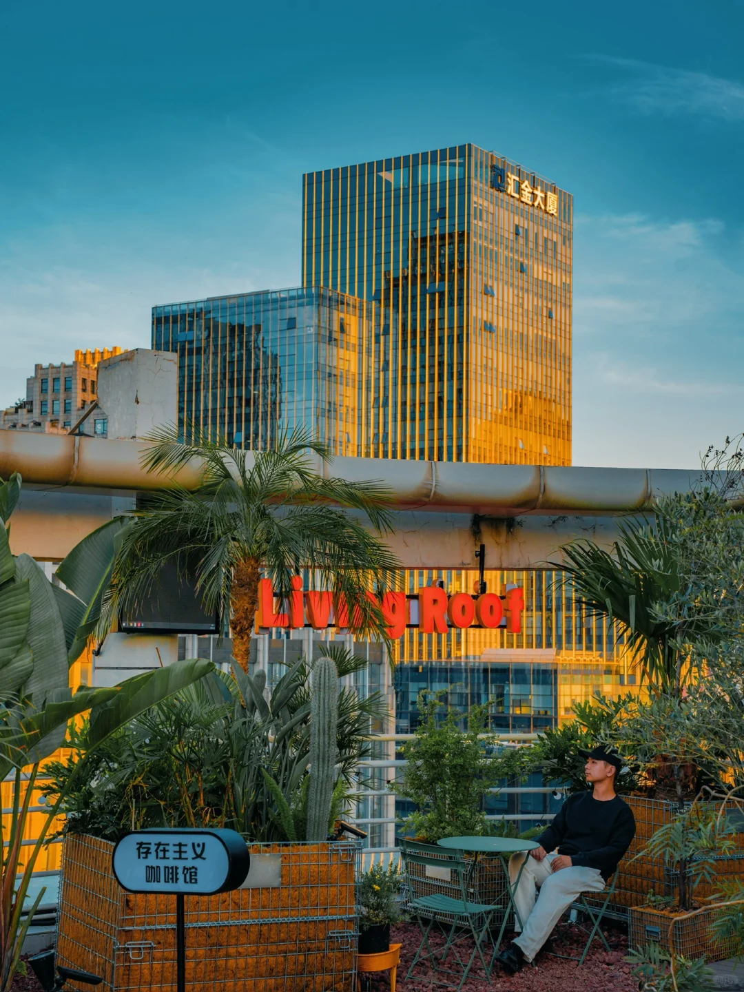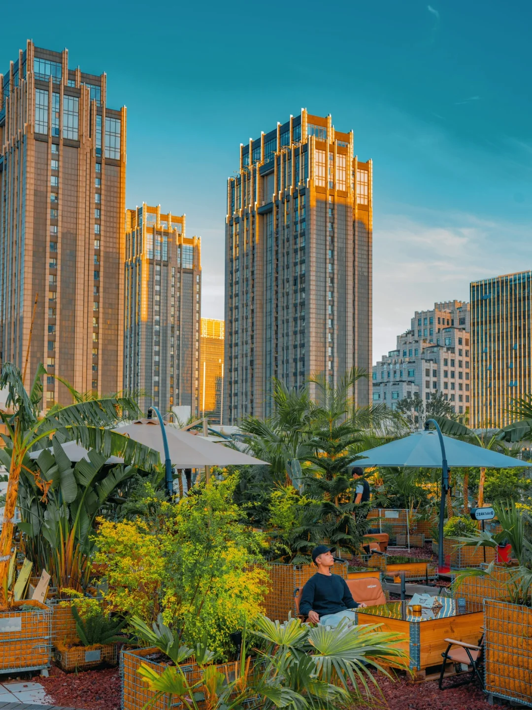 坐在天台上,被绿植环绕,俯瞰城市,吹着微风,喝着咖啡,不要太惬意了~