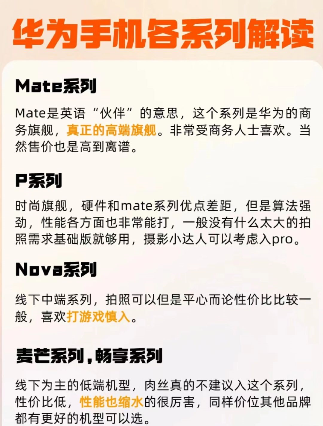 團华为mate系列和p系列最值得进,毕竟是旗舰机,拍照真的没的说,使用也是丝滑得很。