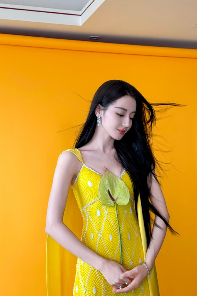 迪丽热巴黄金色高定,内娱一线顶的水准吧。
