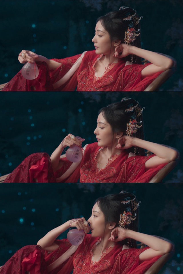 杨幂喝酒封神名场,这样不会呛着吗。