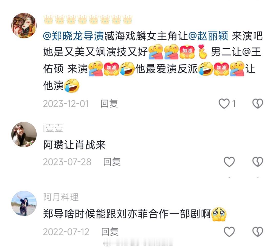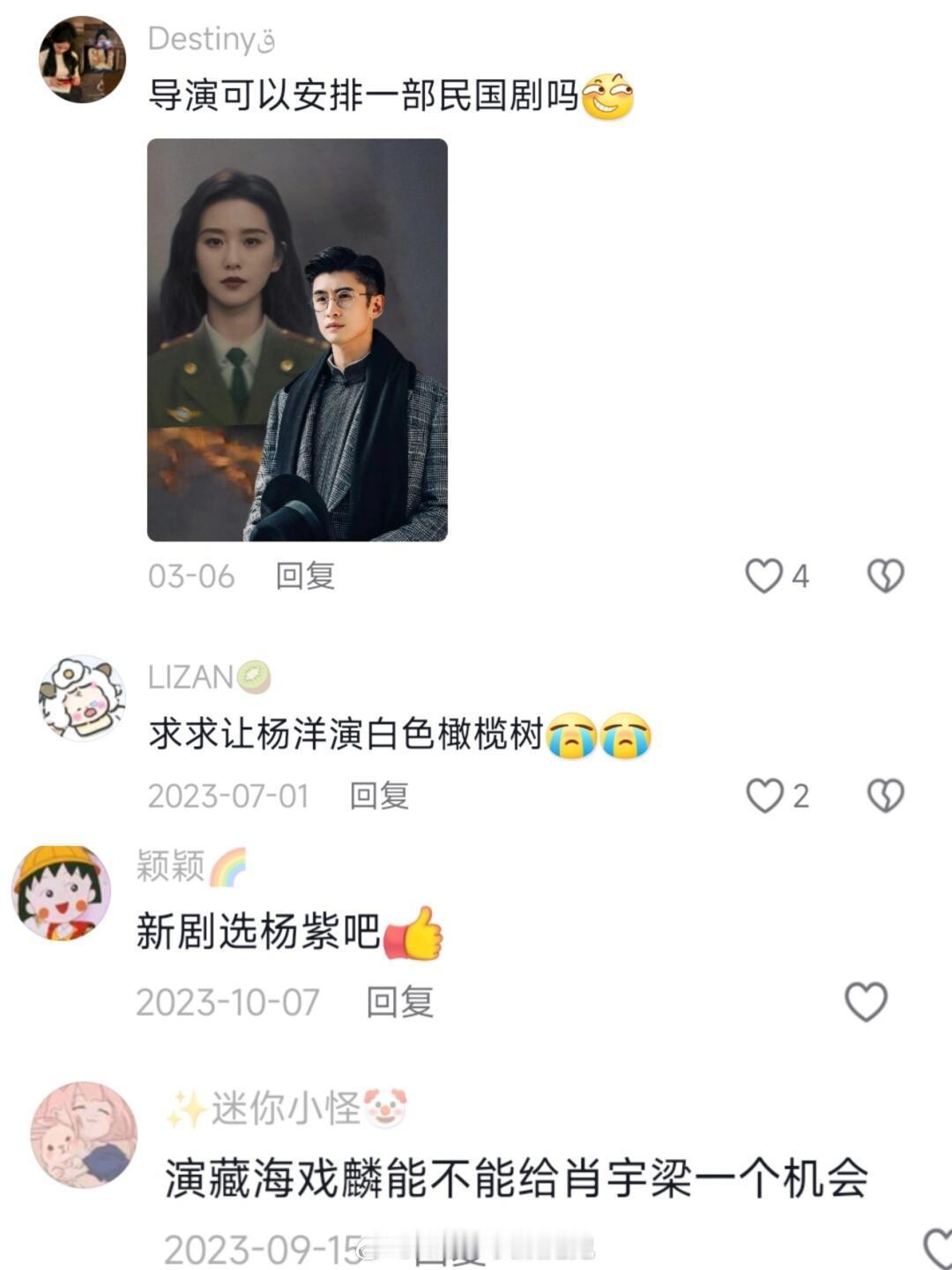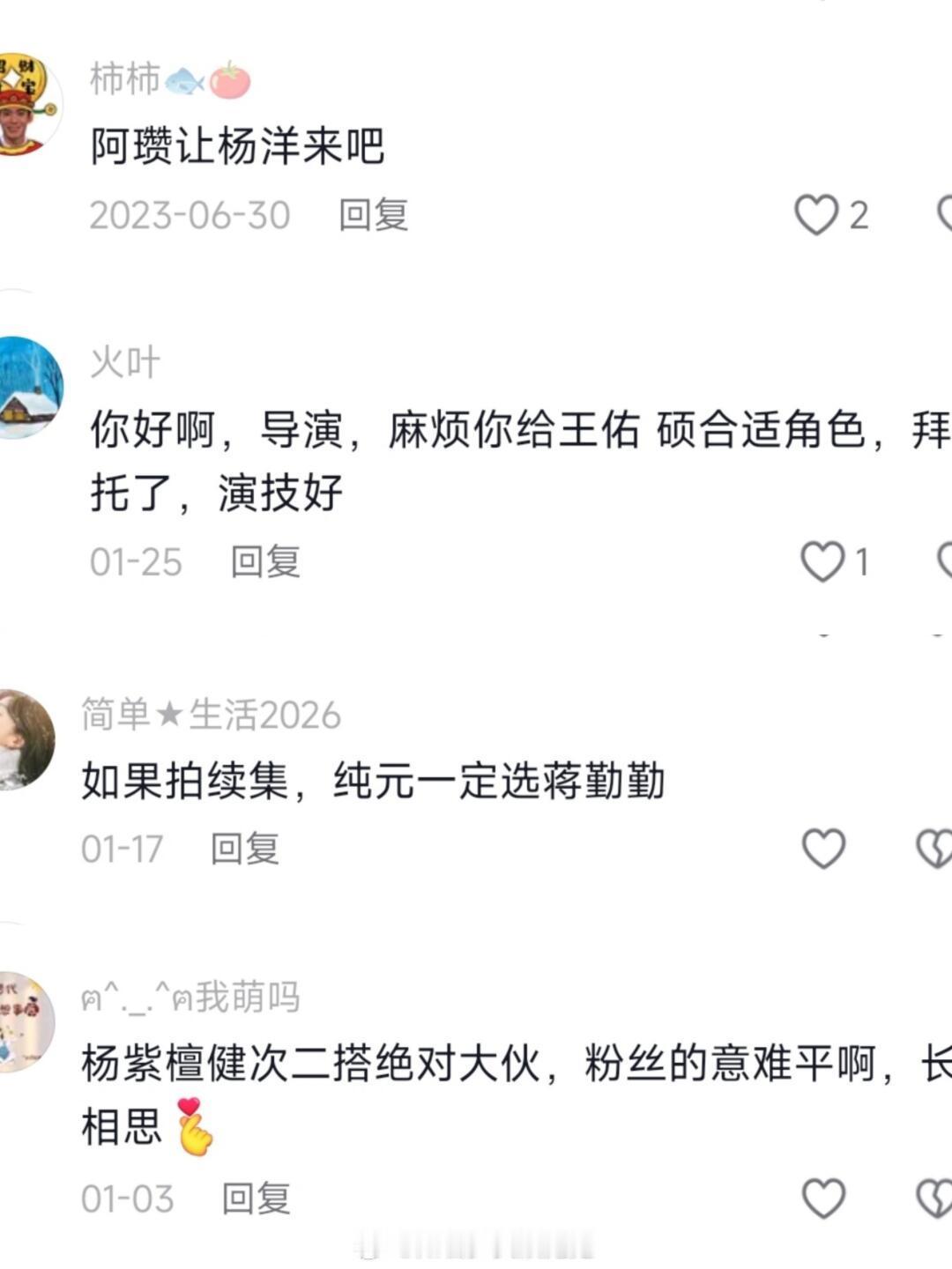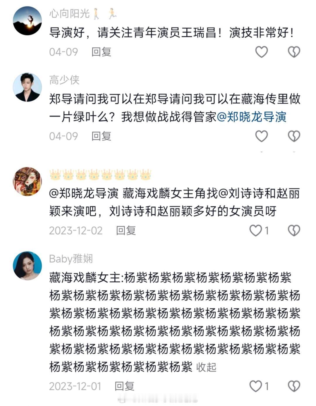 其中有一位小宝姐粉丝,推荐郑导考虑肖战、杨紫,演技很不错的90后演员……虽然我们不知道郑导选角过程中是否真的有看到评论区网友推荐,但是随后没多久就官宣了《藏海传》男主角是肖战,对于这个消息肖战粉丝们肯定是很开心的,小宝姐如愿