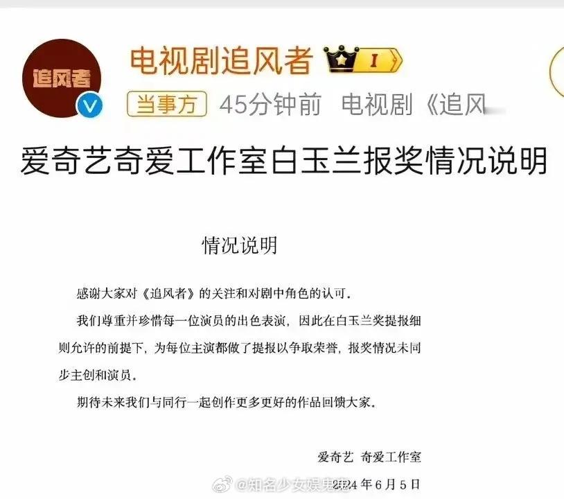 大家都是主演,两人都做了提报,至于谁被提名,最后谁得奖,接受结果就好,何必破防?