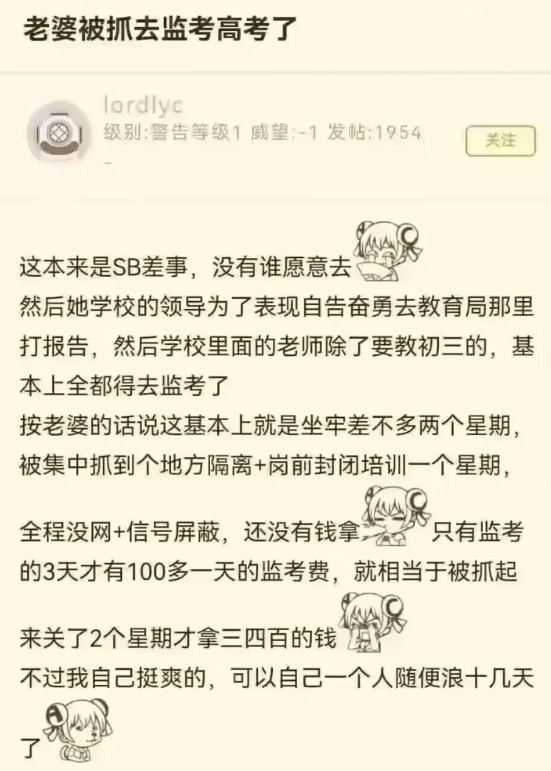 这监考费的价格都不对,考完了也不影响用手机呀,同事媳妇正好是监考老师