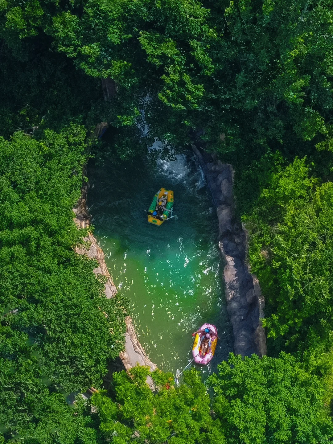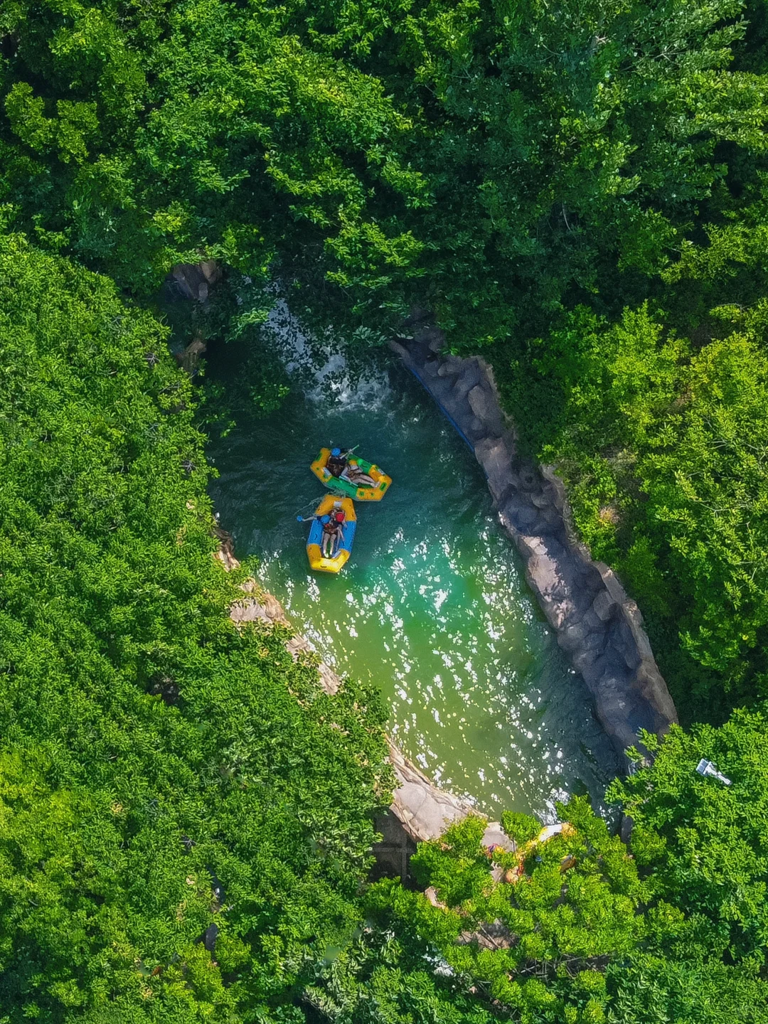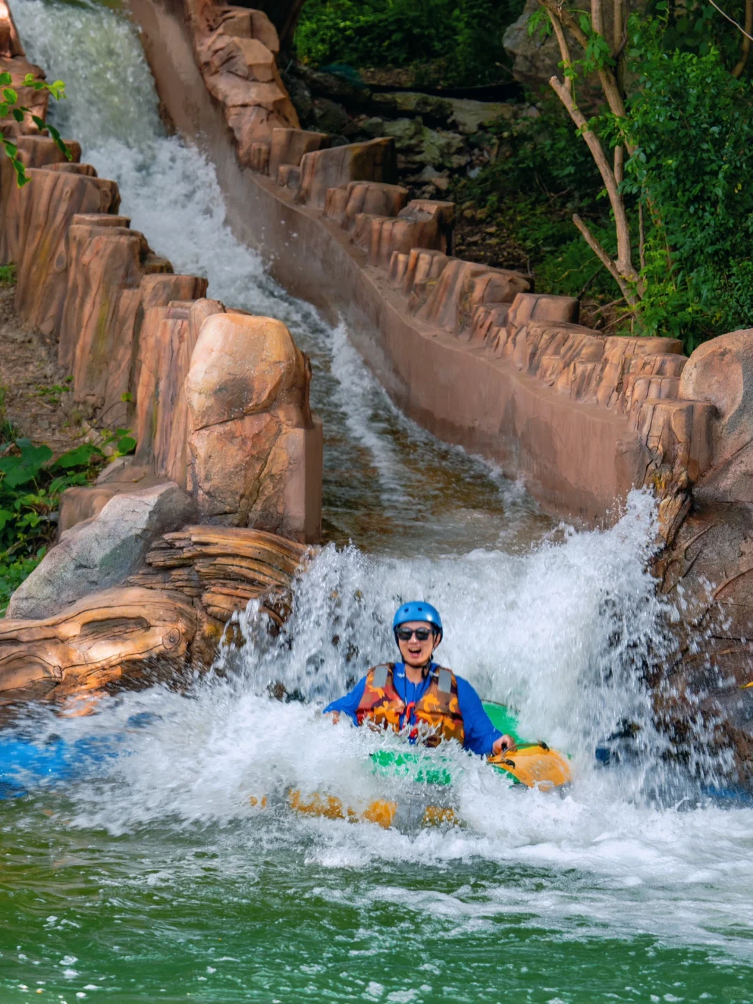 🔹漂流垂直落差达120米,有16道关口还有90度弯角,全程尖叫不断~