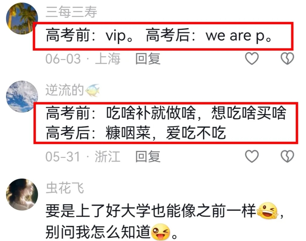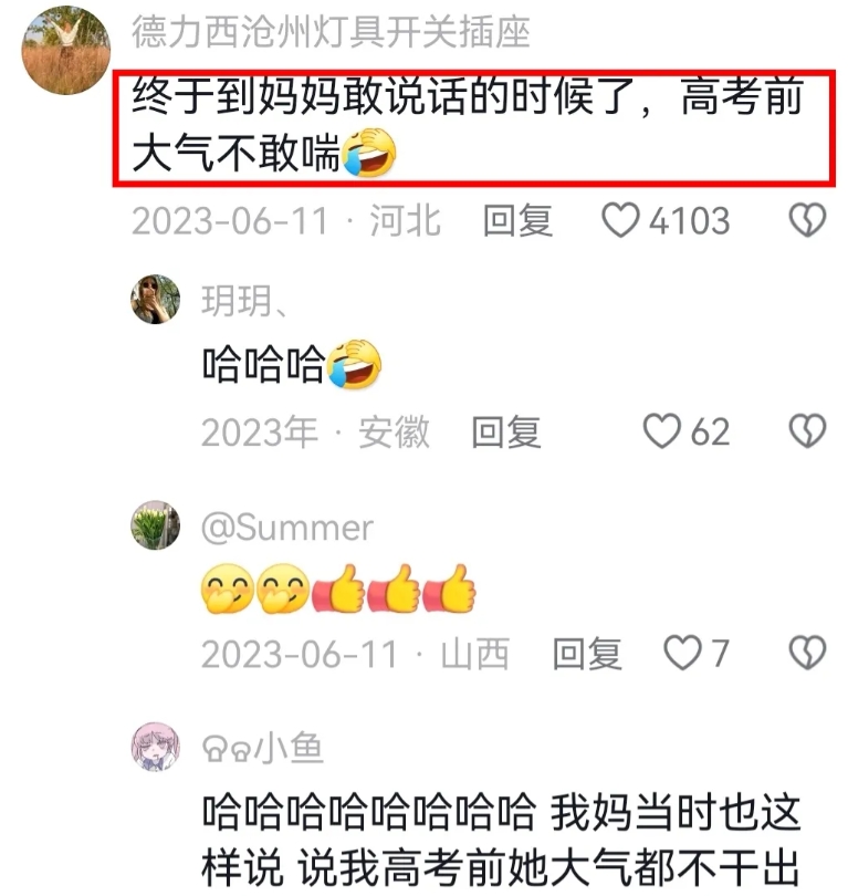有的网友说,考前是太子,考后变弃子,最后成孙子,你妈给你上了一堂世态炎凉课!