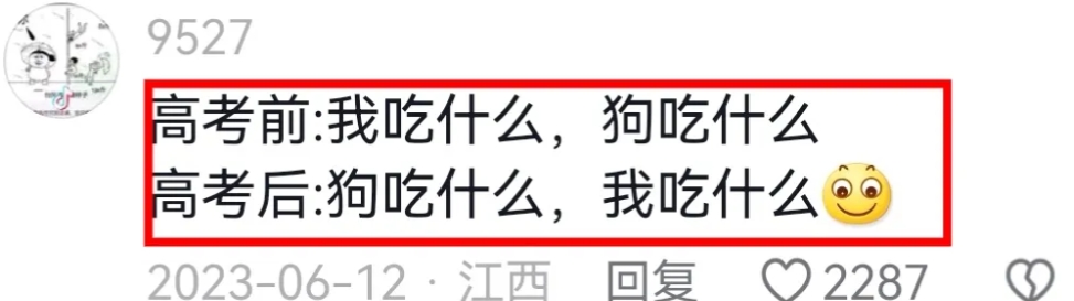 还有的网友说,考前我吃啥狗吃啥,考后狗吃啥我吃啥!看看全国统一配备的妈,是一个机构培训的吧!