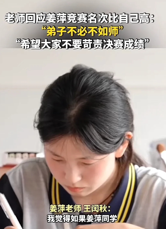 姜萍的数学老师王闰秋回应了姜萍名次比自己高,王老师说:“弟子不必不如师,即便在决