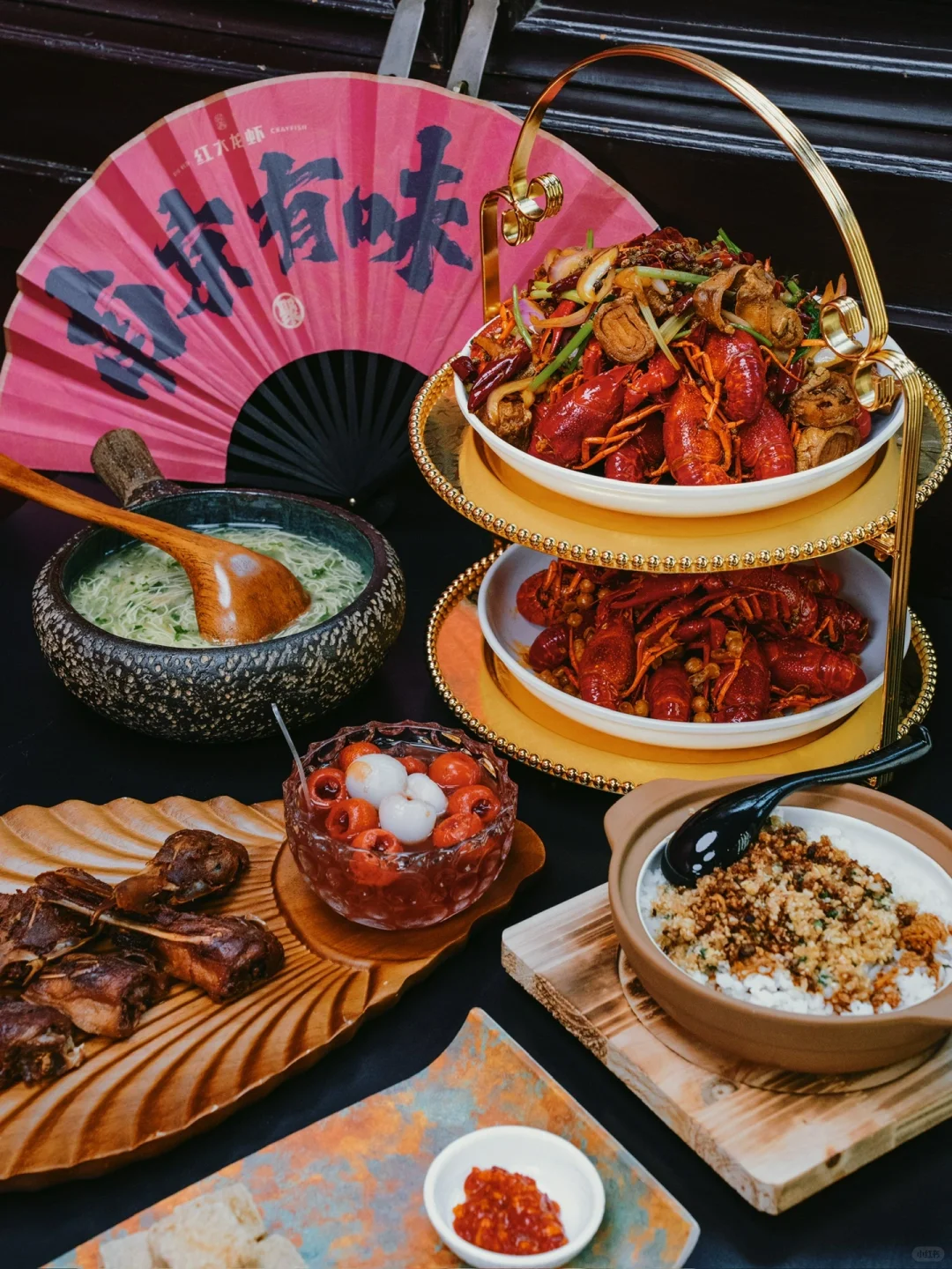 ▪图5这家环境好绝,拍照打卡机位也多,尤其是红丝绸楼梯设计太美了~正是吃小龙虾的季节,龙虾好好吃,口味恩正~