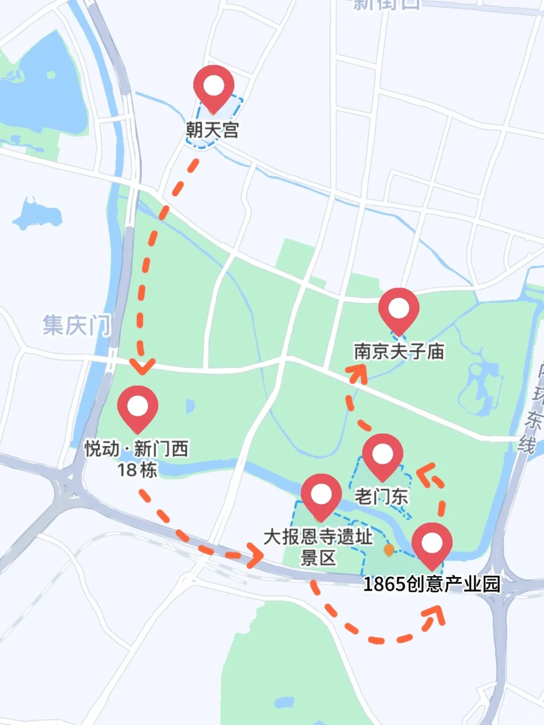 朝天宫➠悦动新门西产业园➠大报恩寺遗址景区➠1865创意产业园➠老门东➠夫子庙