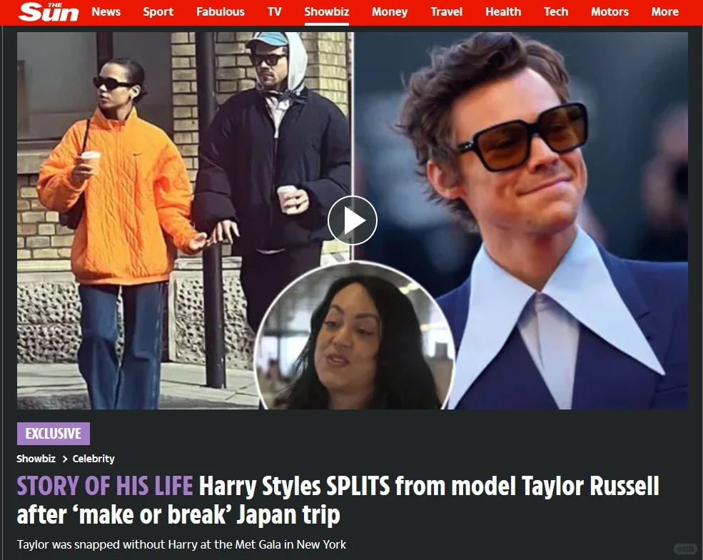 根据太阳报的报道,「乐坛小三」Harry Styles 与他的演员女友 Taylor Russell 在交往14个月后,现在已经分手。