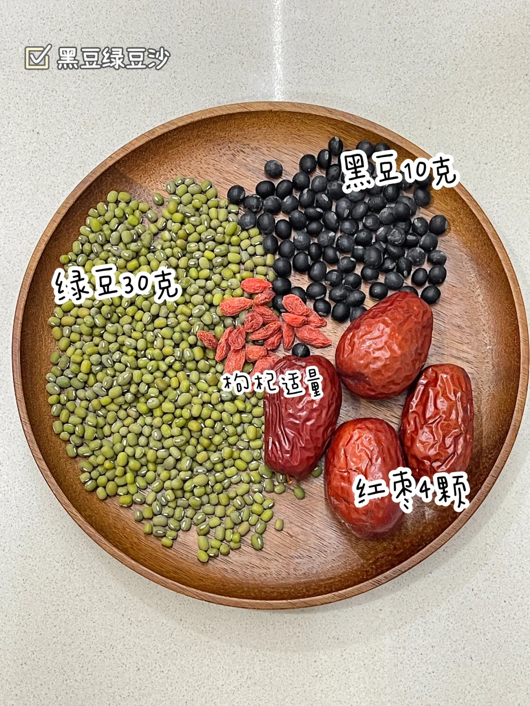 🔹绿豆30克、黑豆10克、红枣4颗、枸杞适量