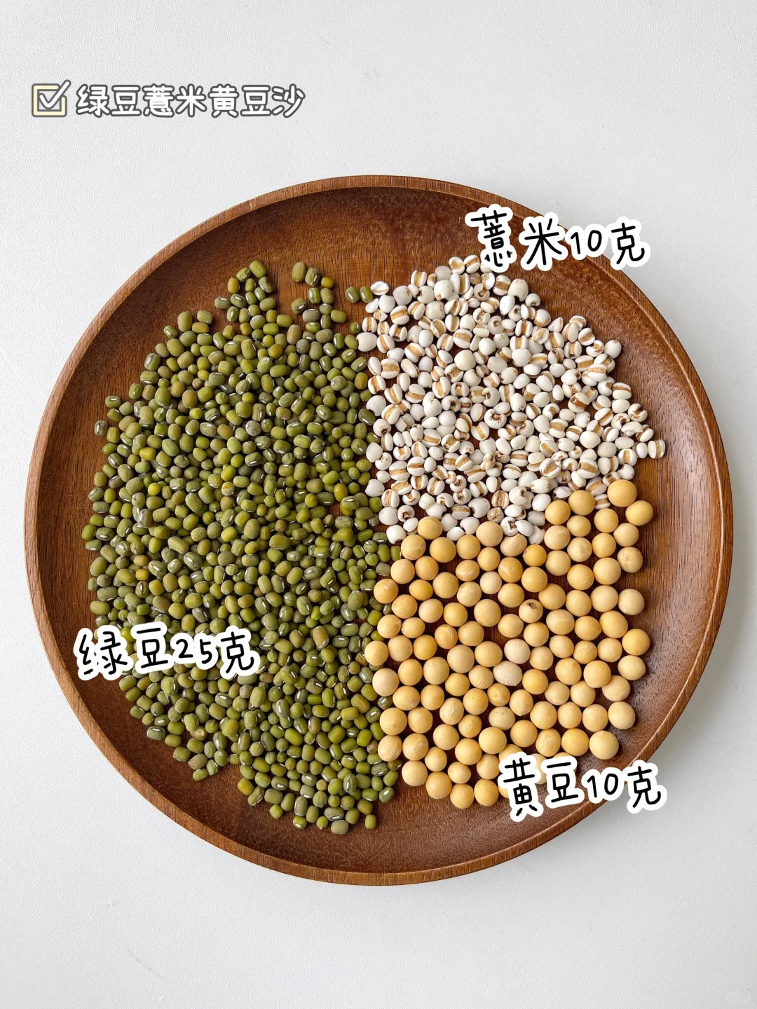 🔹绿豆25克、薏米10克、黄豆10克、清水400毫升