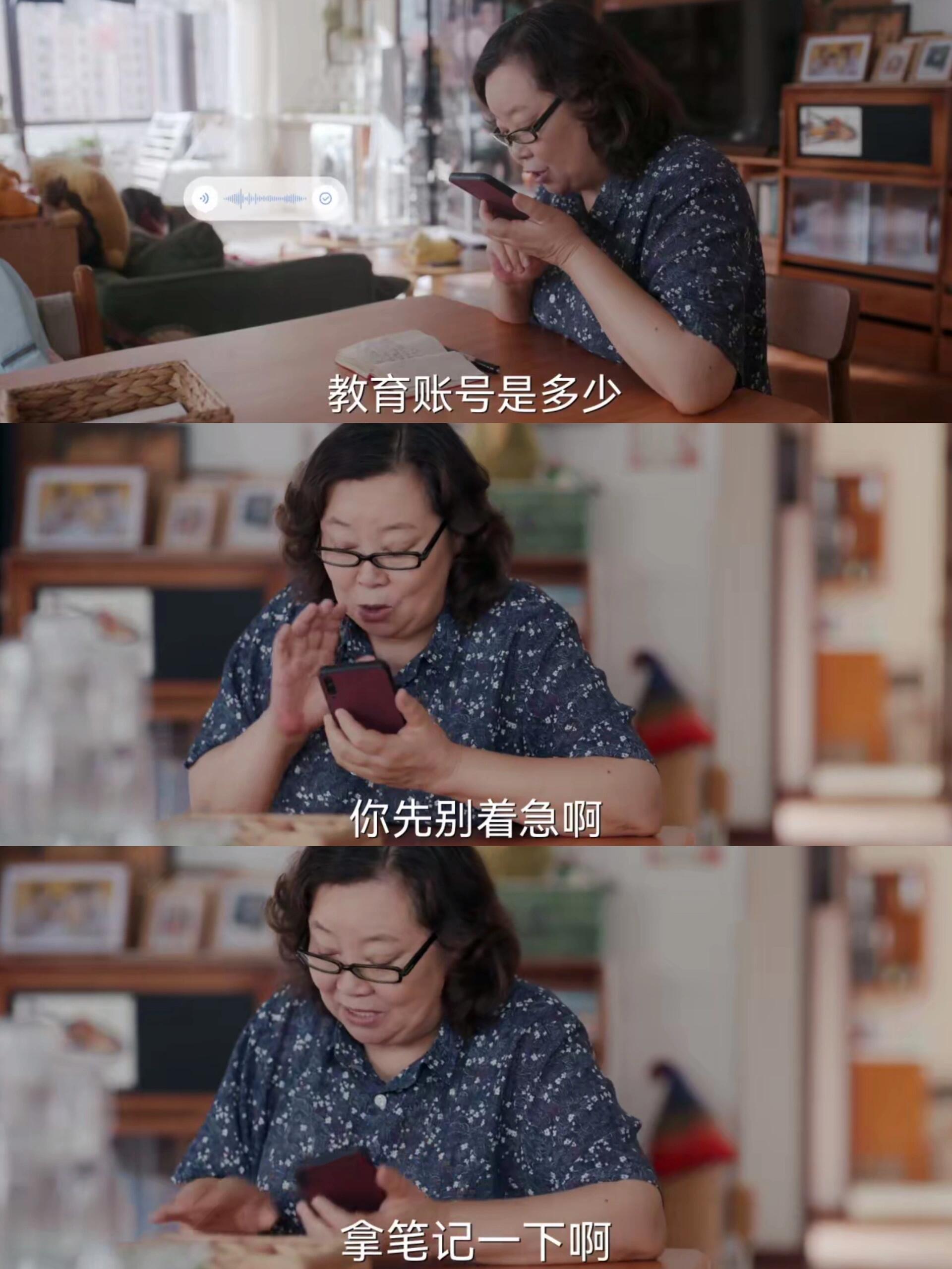 老年人本来就不怎么会使用手机,又偏偏需要帮果宝完成英语课的线上作业,急得奶奶都开始查笔记做笔记了