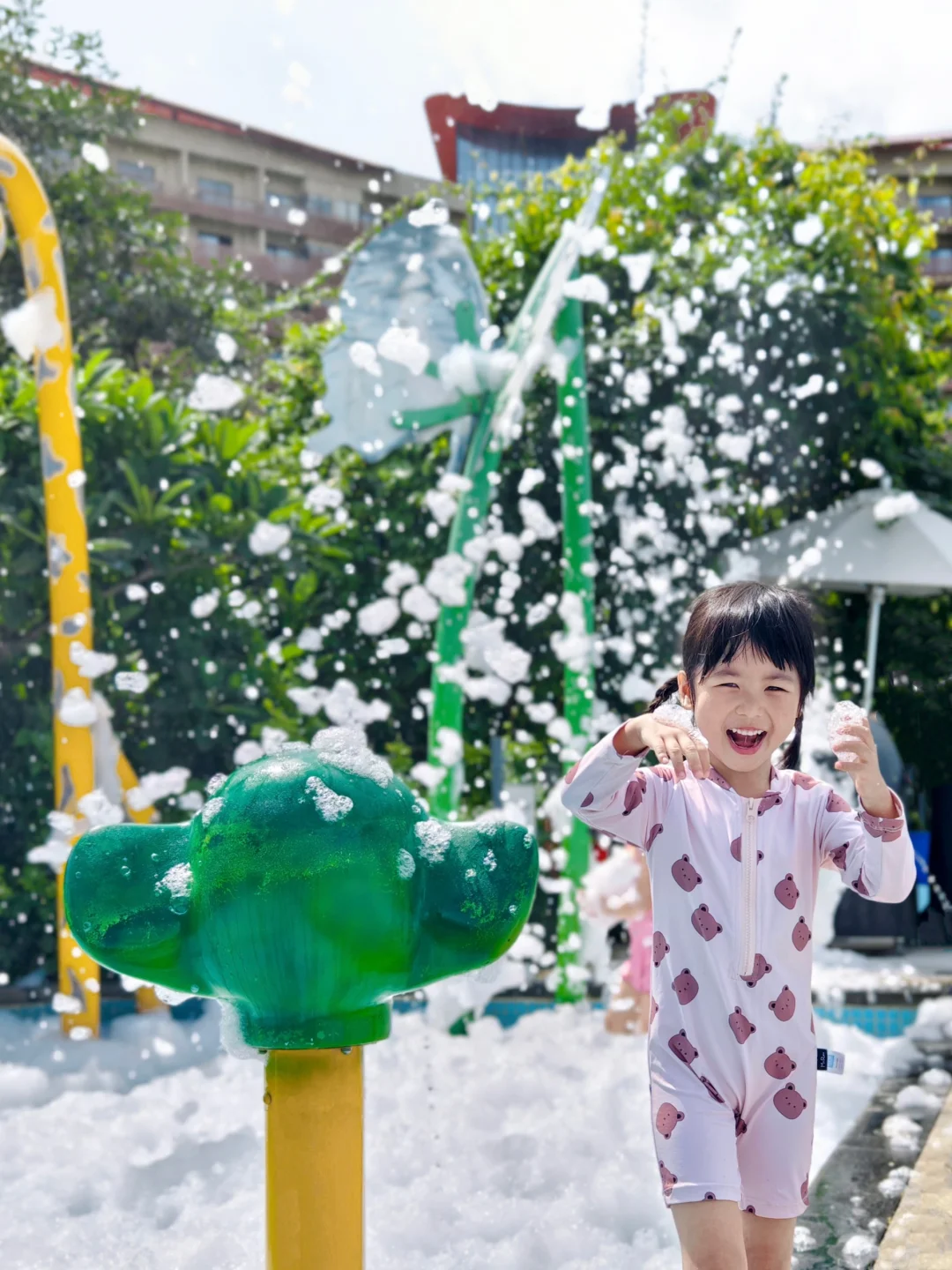 夏天少不了玩水💦有室内恒温泳池,不用怕晒啦~户外泳池还有孩子蕞爱的泡泡秀🫧(周五六日才有哦)尽情嬉水玩耍,太快乐啦😄室内儿童乐园、游戏厅🎮游玩小火车🚂观光自行车🚲一天下来亲子活动安排得满满当当!健身房、干湿汗蒸一应俱全