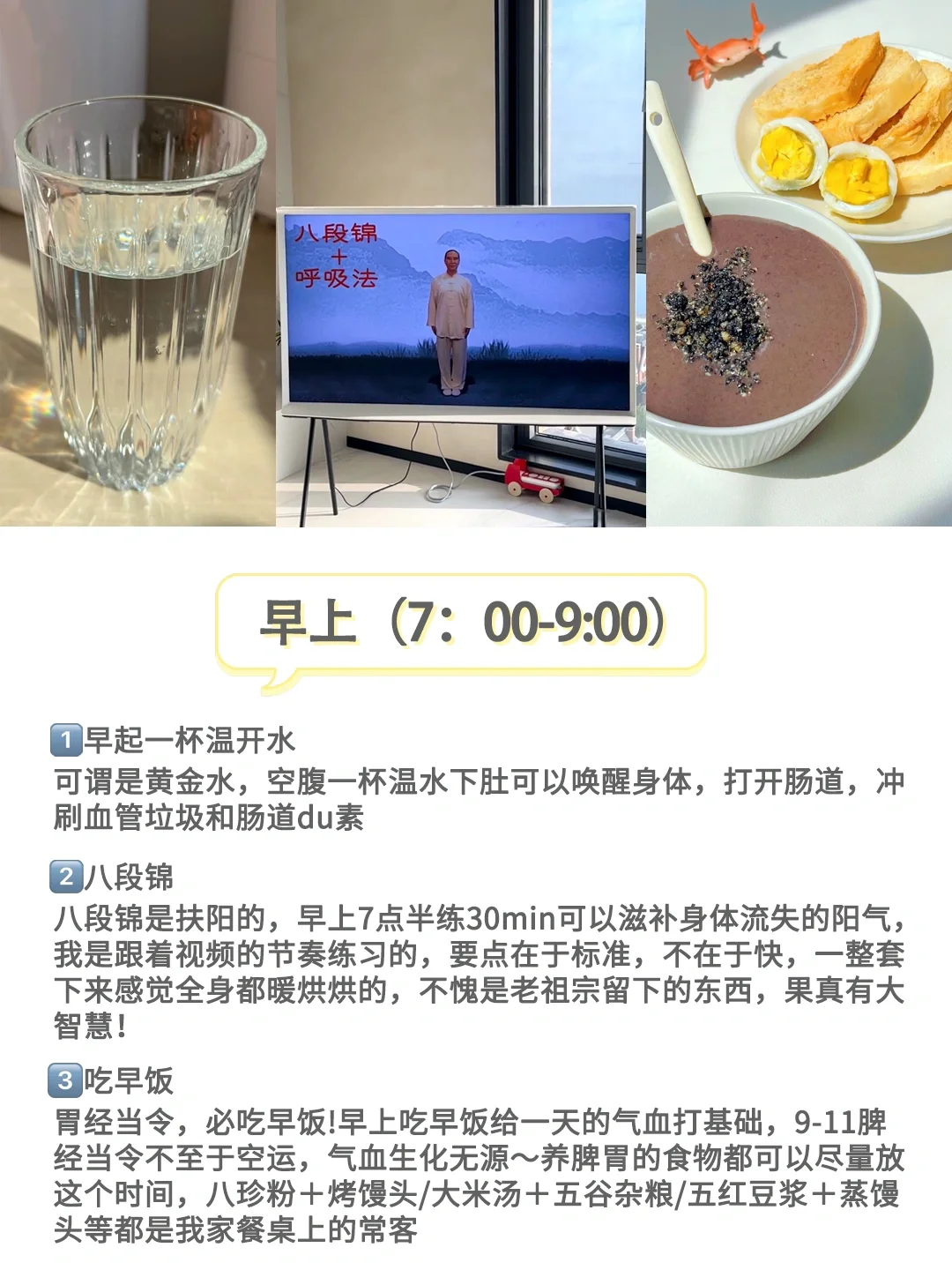 ❸八段锦是扶阳的,早上7点半练30min可以滋补身体流失的阳气,一整套下来感觉全身都暖烘烘的,不愧是老祖宗留下的东西,果真有大智慧!