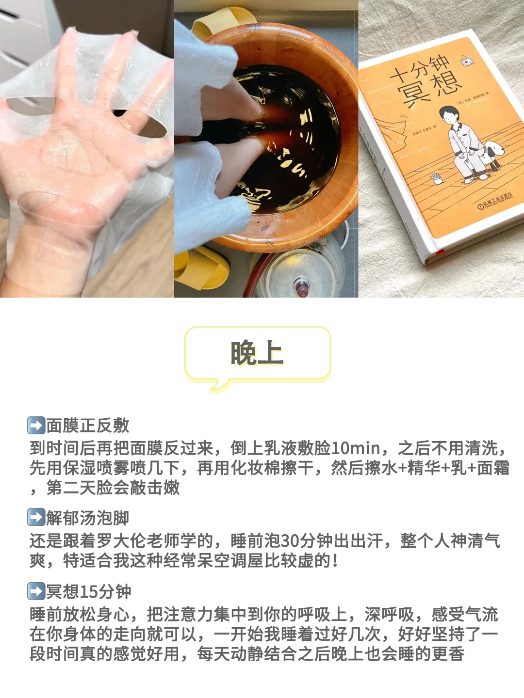 ❸睡前冥想15分钟,把注意力集中到你的呼吸上,深呼吸感受气流在你身体的走向就可以,好好坚持一段时间真的感觉好用,每天动静结合之后晚上也会睡的更香