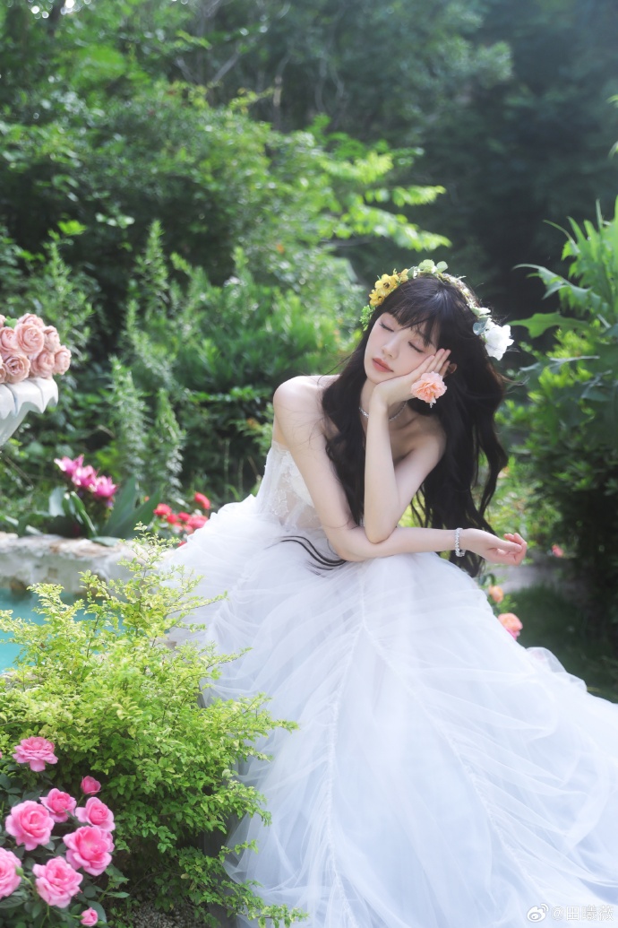 田曦薇晒照,网友称穿得像婚纱。已经有人在幻想,和田曦薇的孩子叫啥名。关键在于,这样想的都是女生。
