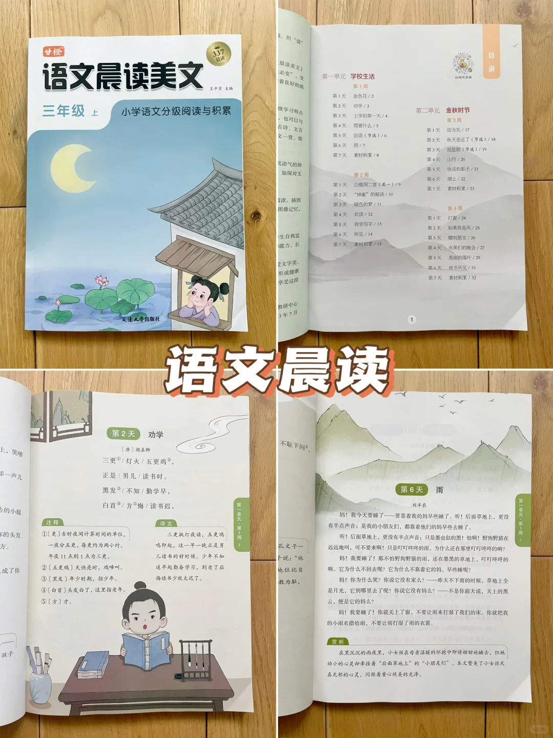 《甘橙晨读美文》:小翼之前用的是中州古籍出版的《337晨读》(这套适合一年级选手培养习惯,每天5分钟就读完了),今年又用回了甘橙系列,除了文品好,其阅读时长也更长一些,10~15min,更匹配已经形成晨读习惯的孩子~