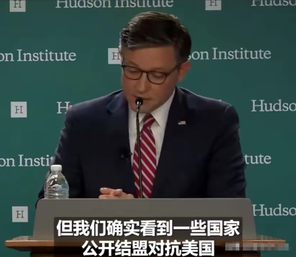 美国众议院的议长约翰逊在7月12号说了,现在虽说没见着像二战那会儿的三国联盟,可