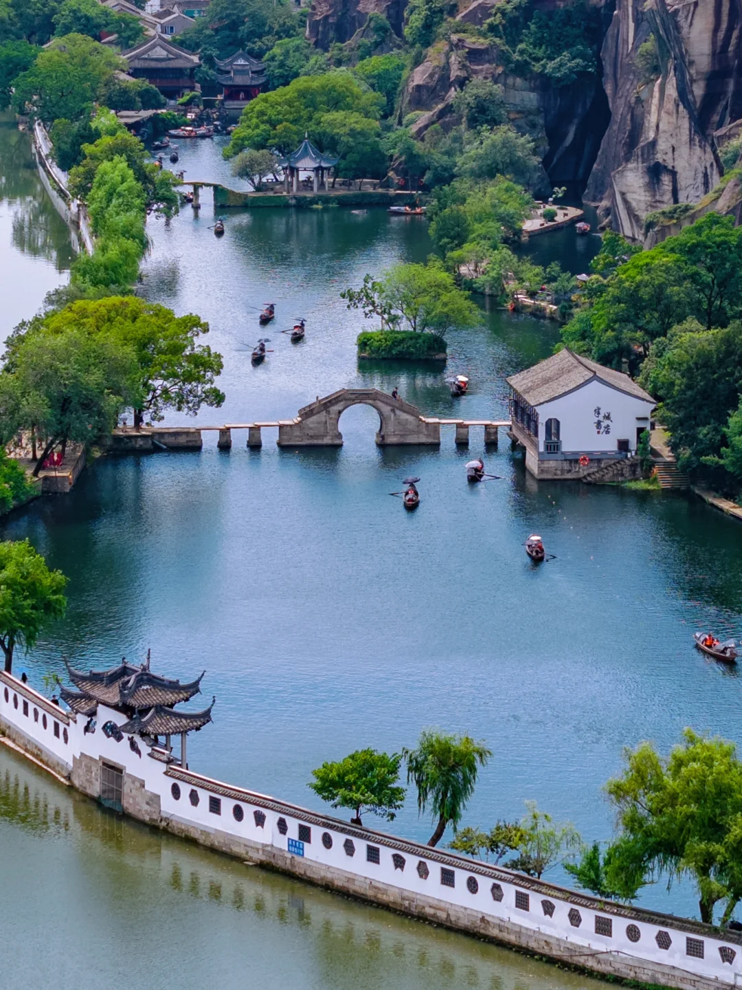 以崖壁、岩洞、石桥、湖面巧妙结合,是浙江三大名湖之一,也是西游记的取景地~