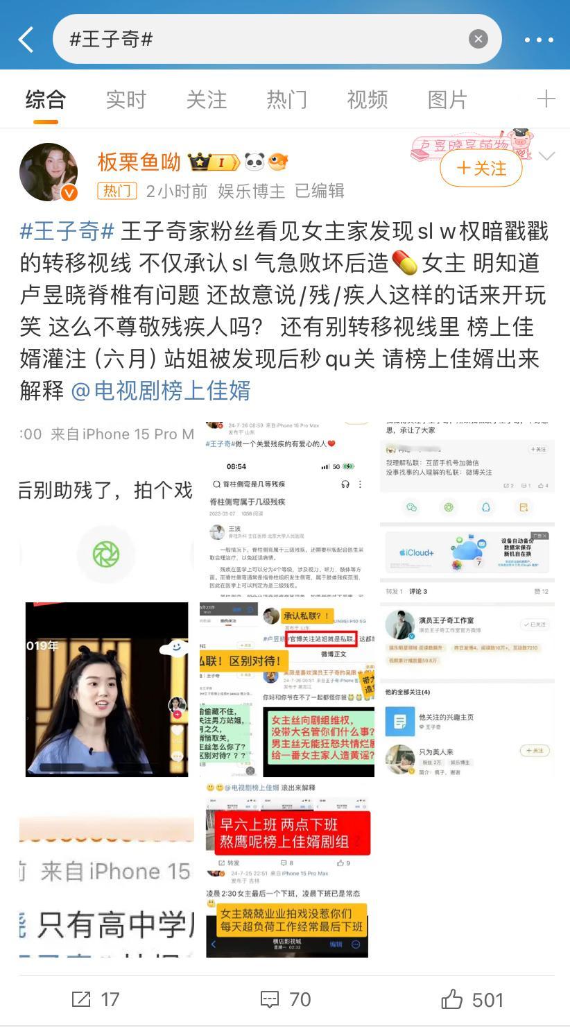 卢昱晓粉丝把王子奇热门给涂了,好像是因为王子奇的粉丝屏蔽了卢昱晓粉丝帖子,榜上佳婿官博关注了男主站姐…… #王子奇##卢昱晓#
