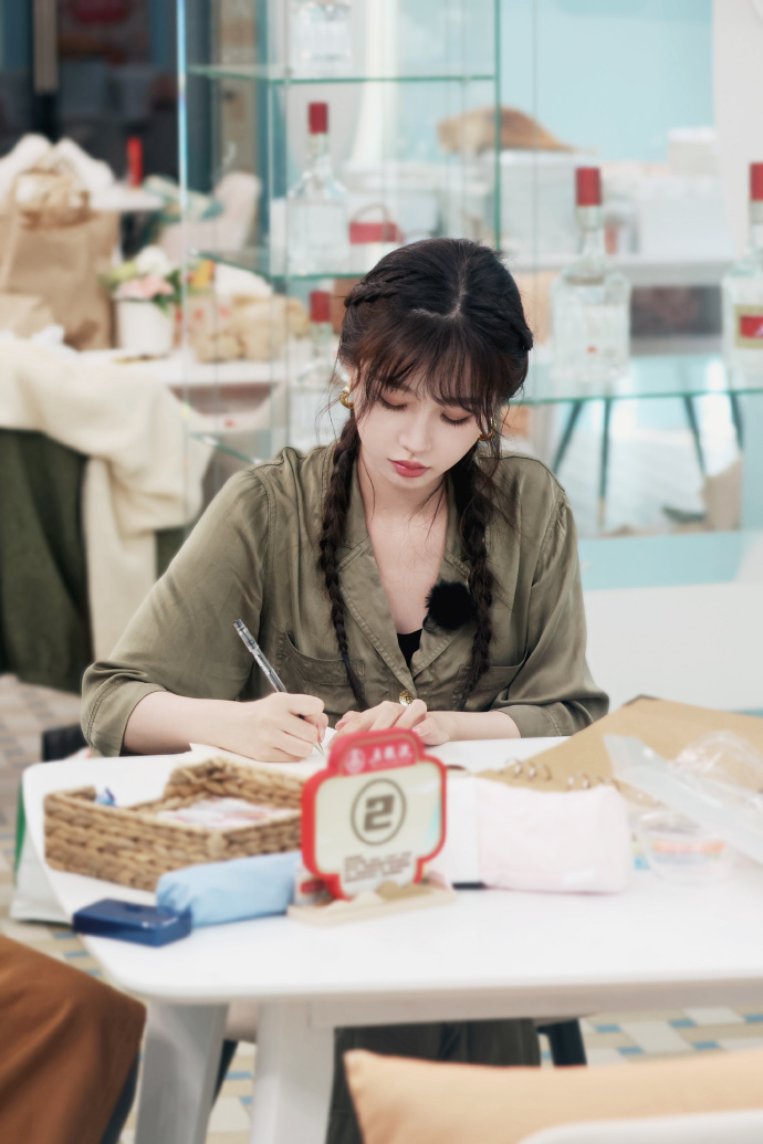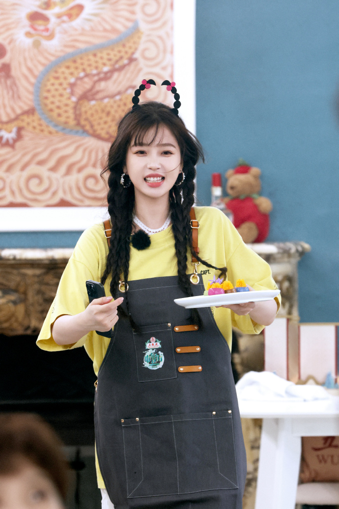 虞书欣这个头箍要火了,远看就像梳了个冲天辫。