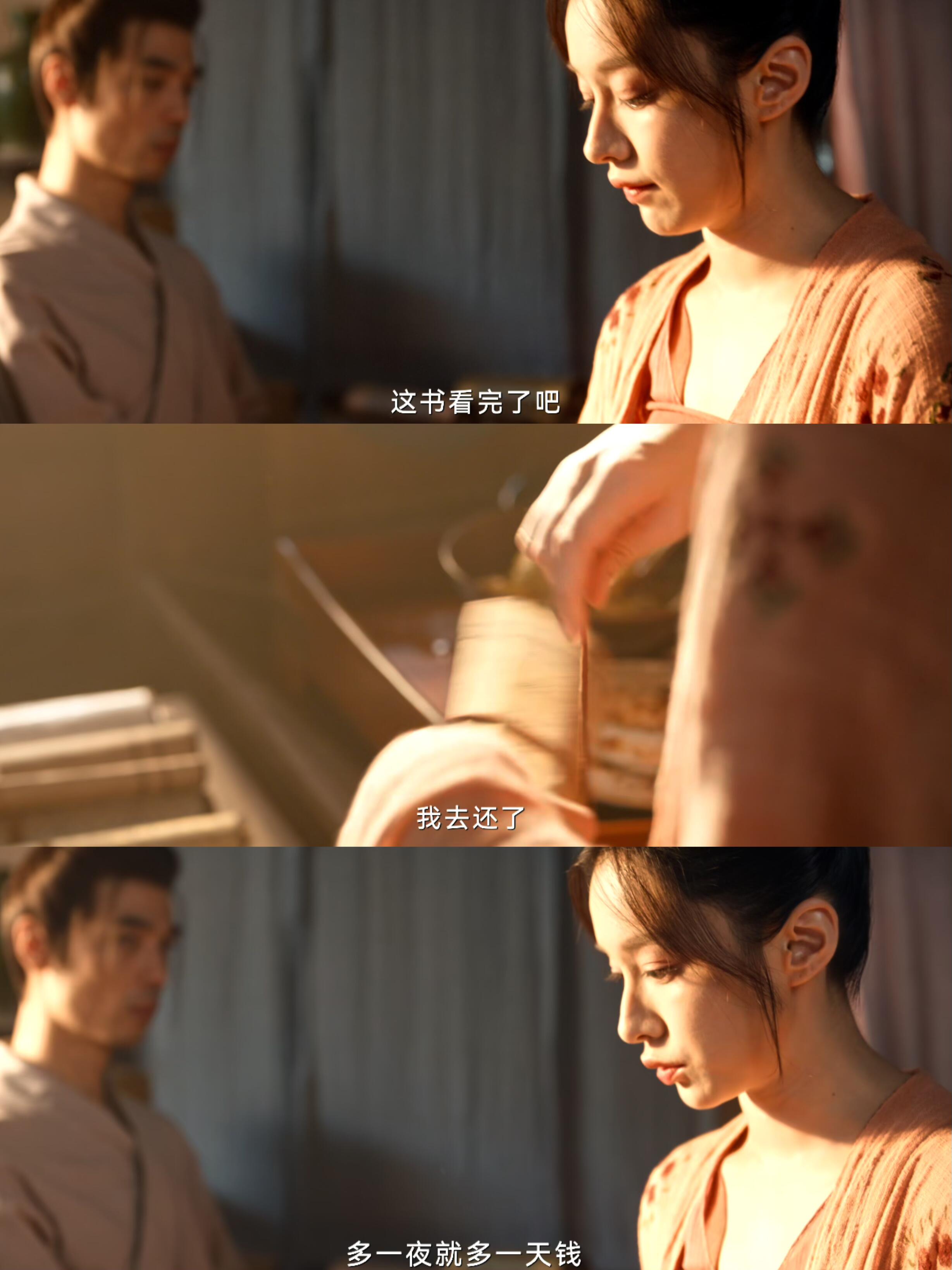 青溪帮老公来还书,被借书的掌柜调侃,说有更好的书,比她还的这本还好看,旁人听到青溪借的书名,马上也露出不可言说的表情,说青溪是个妙人,就连后来无赖找到青溪 都嘴了一句她,说要看这种书,去我们家看啊。