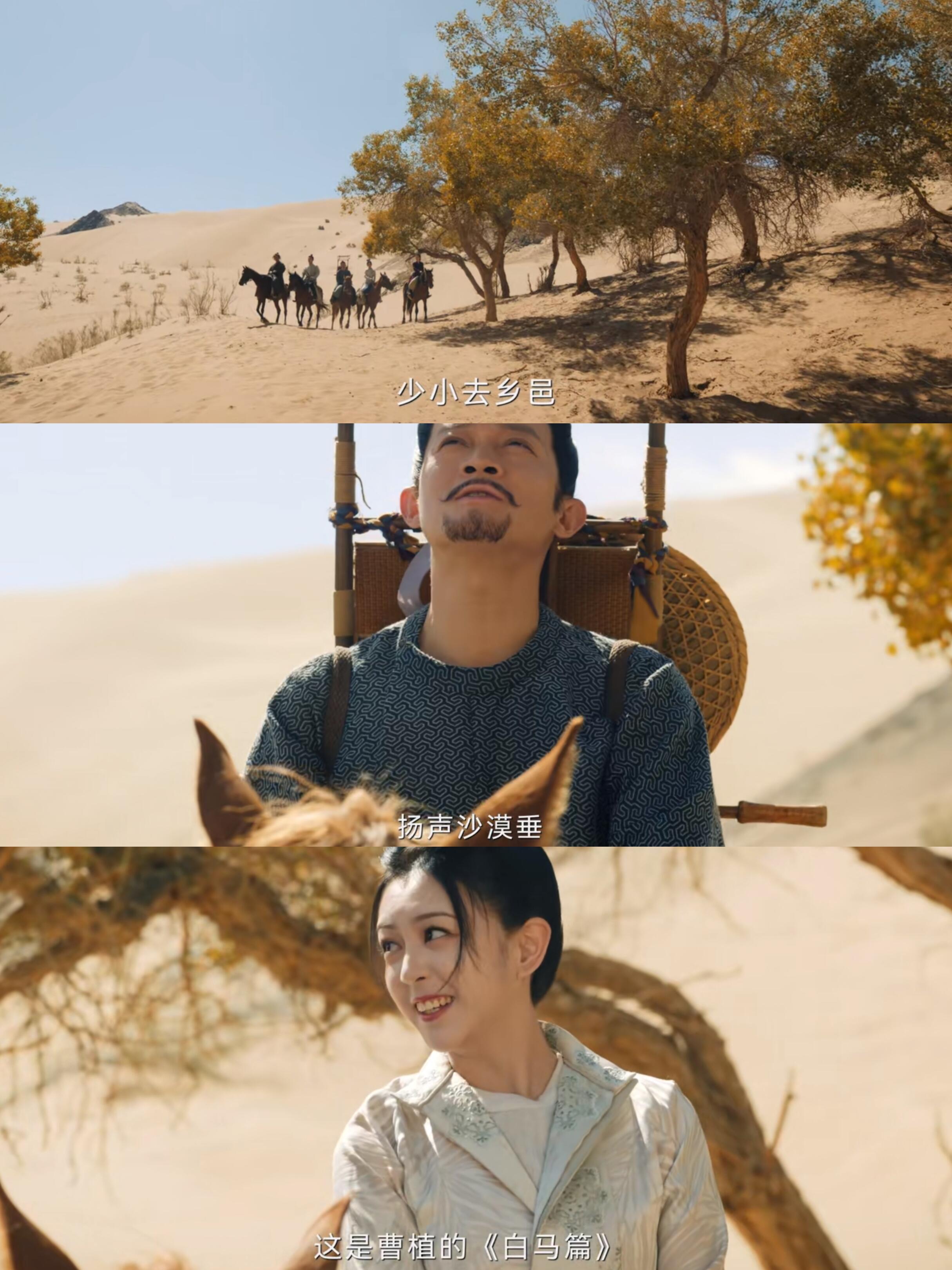 继续西行之路,五人组迎着茫茫戈壁念诵《白马篇》 ,每个人都有慷慨广博的胸襟,心怀家国天下。