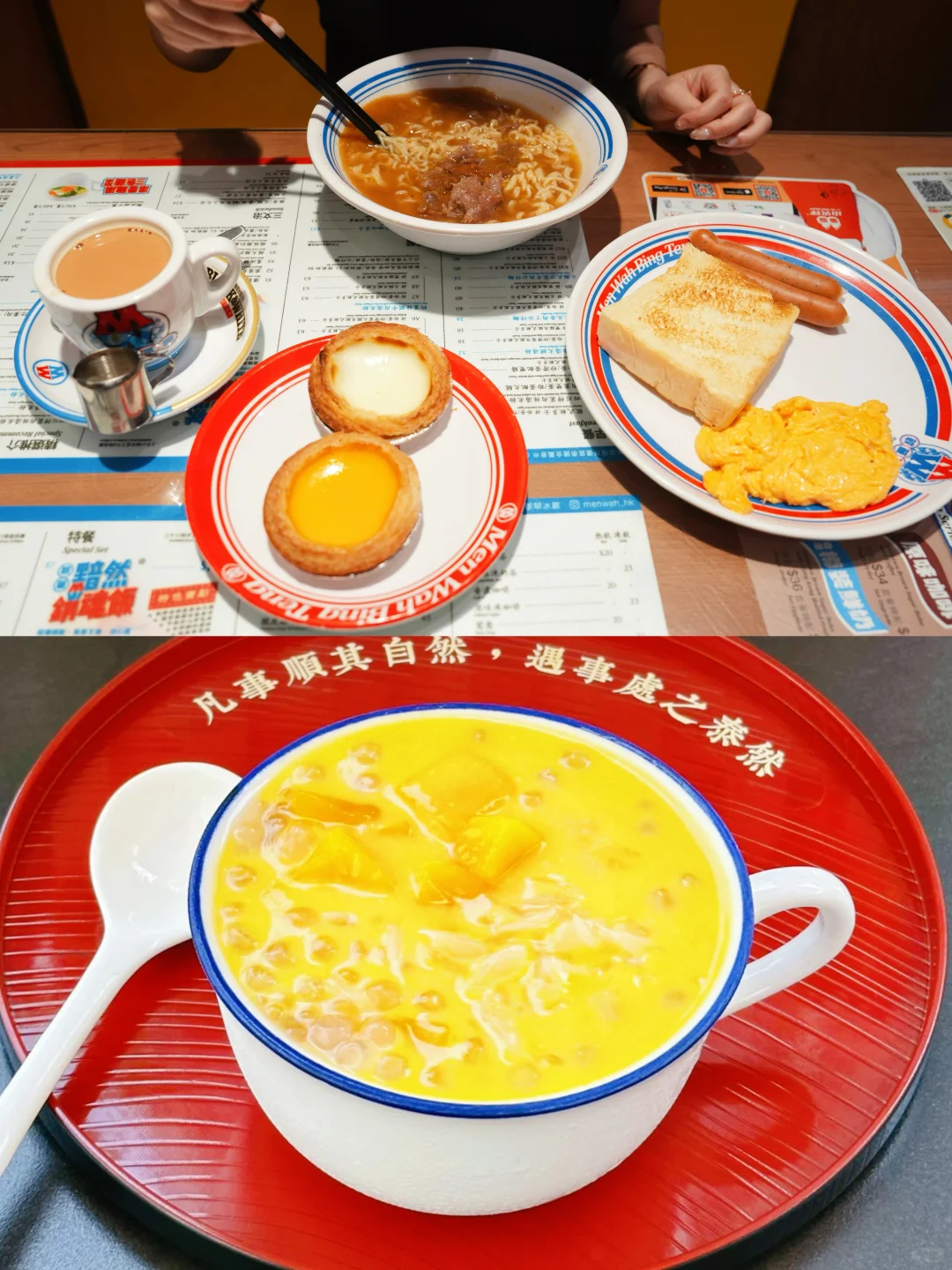 午餐去【囍越】猪颈肉金边粉➕椰青水➕烧烤拼盘,分量好足哦~女儿超喜欢吃🤤这么受欢迎不是没有道理的👏🏻下午茶再来个【满记】杨枝甘露~好满足哇~