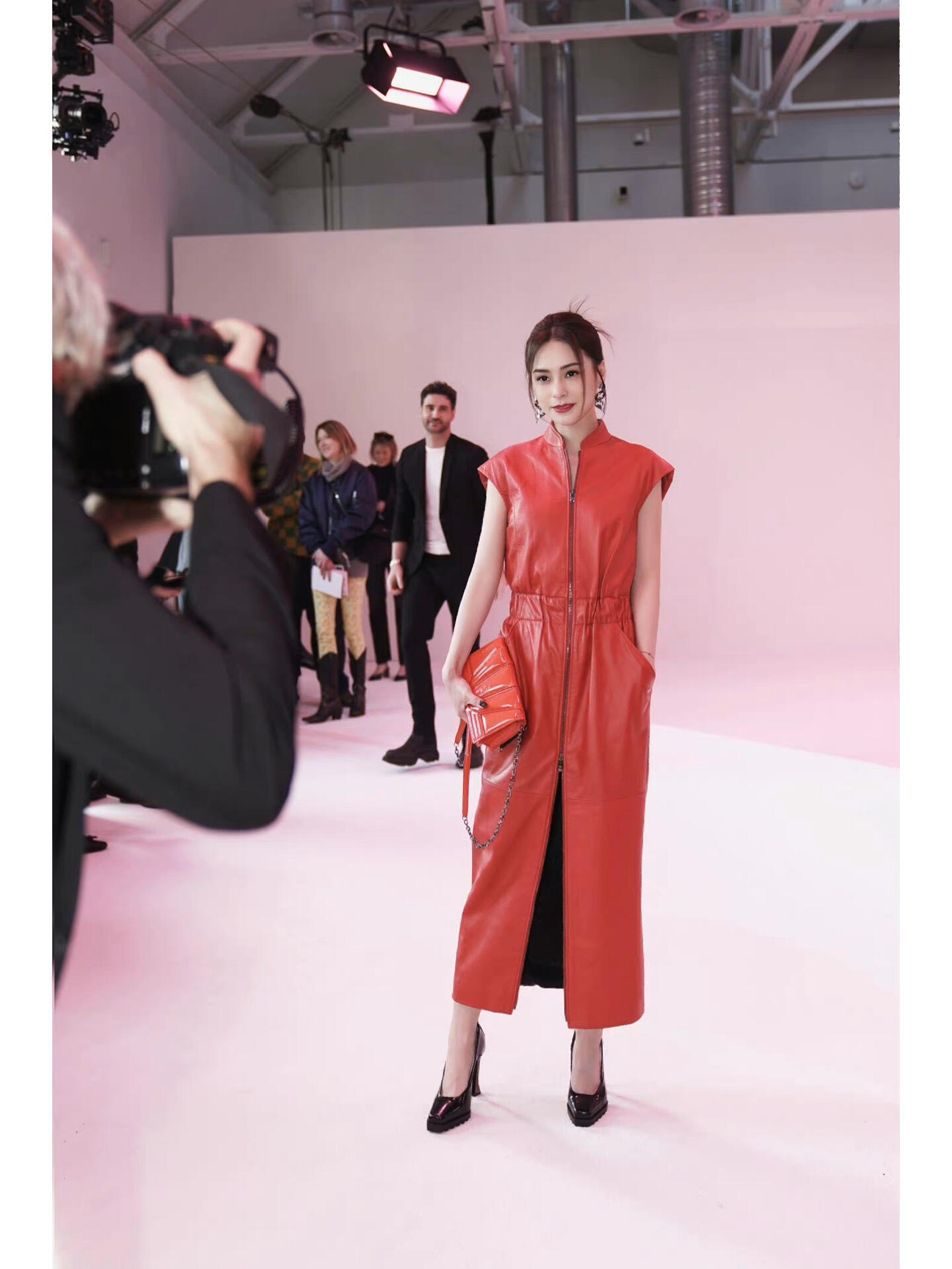 阿娇米兰红裙造型!白到发光!美人在骨!