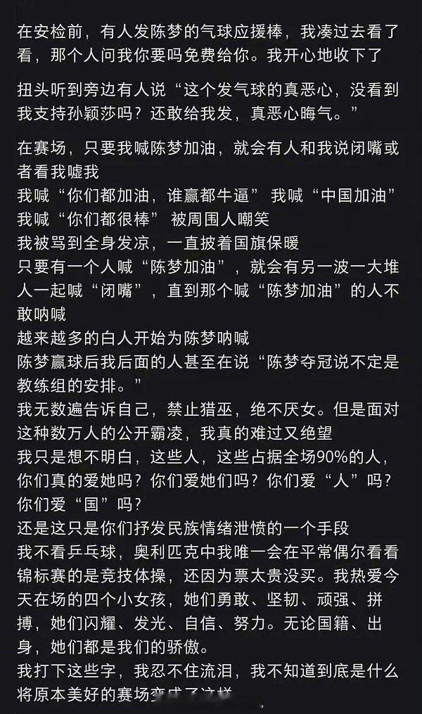 #孙颖莎说有遗憾也能接受#不是这是真的假的啊,只要有人喊陈梦加油就会有人喊闭嘴…