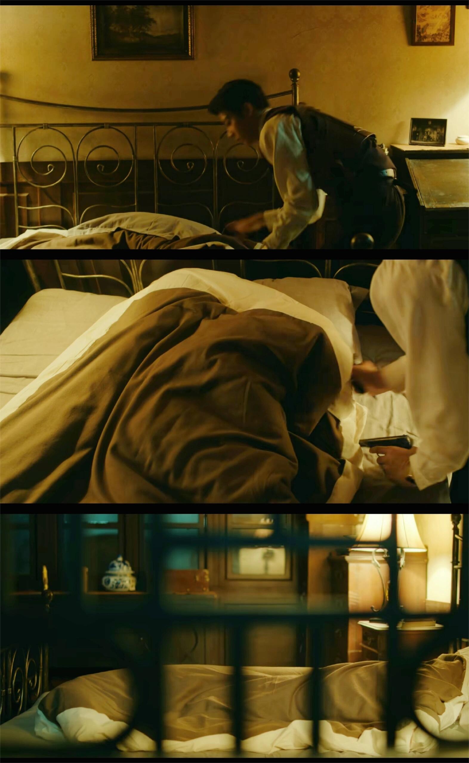 躺在床上目标太大了,把衣服塞进被子伪装有人,自己跑到卫生间,拿着枪坐在马桶上睡觉