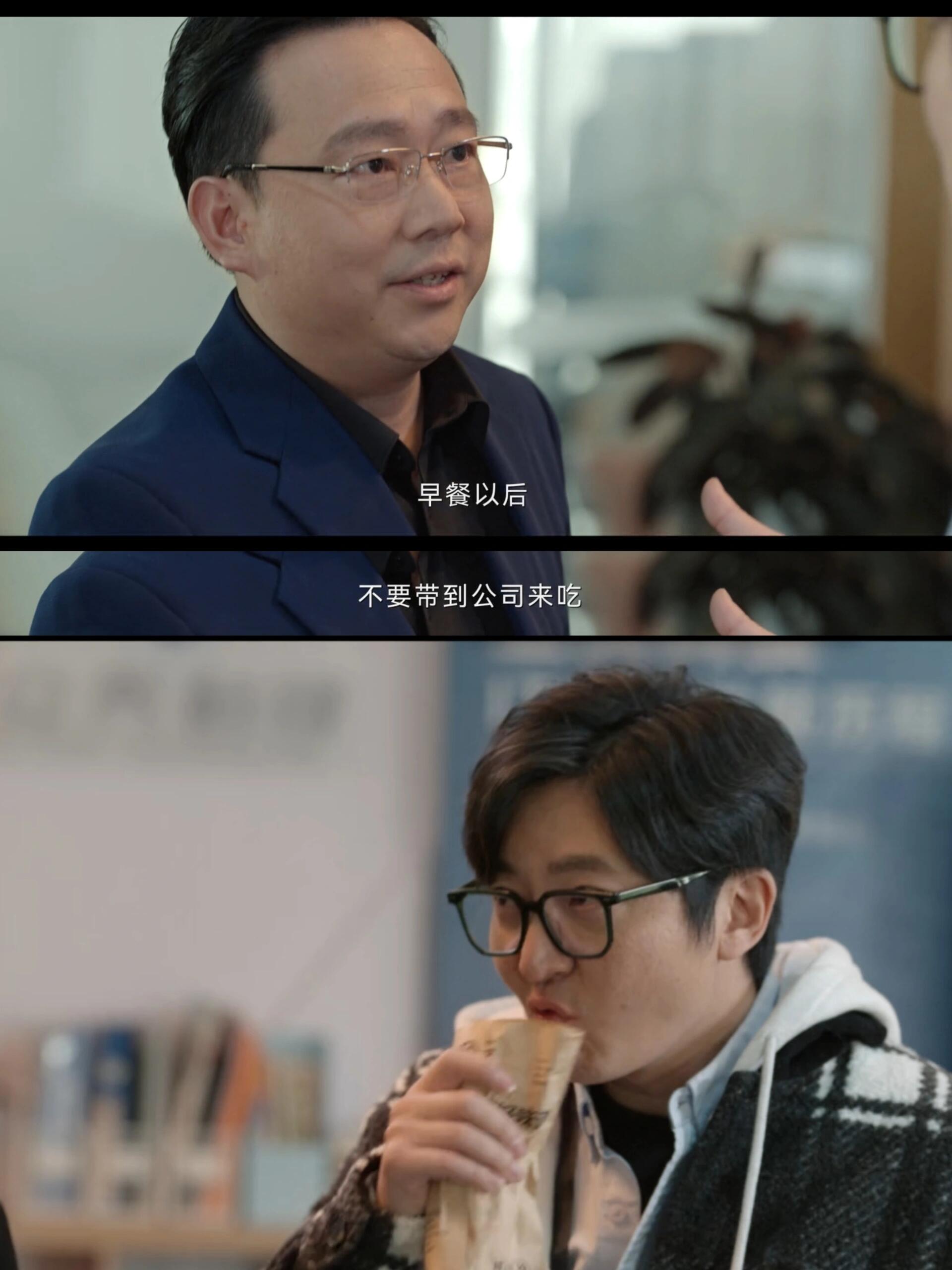 这时候,新经理已经感觉不爽了,本来就是新官上任三把火,再加上觉得没有被尊重,直接当场说男主“以后不要在公司吃早餐”