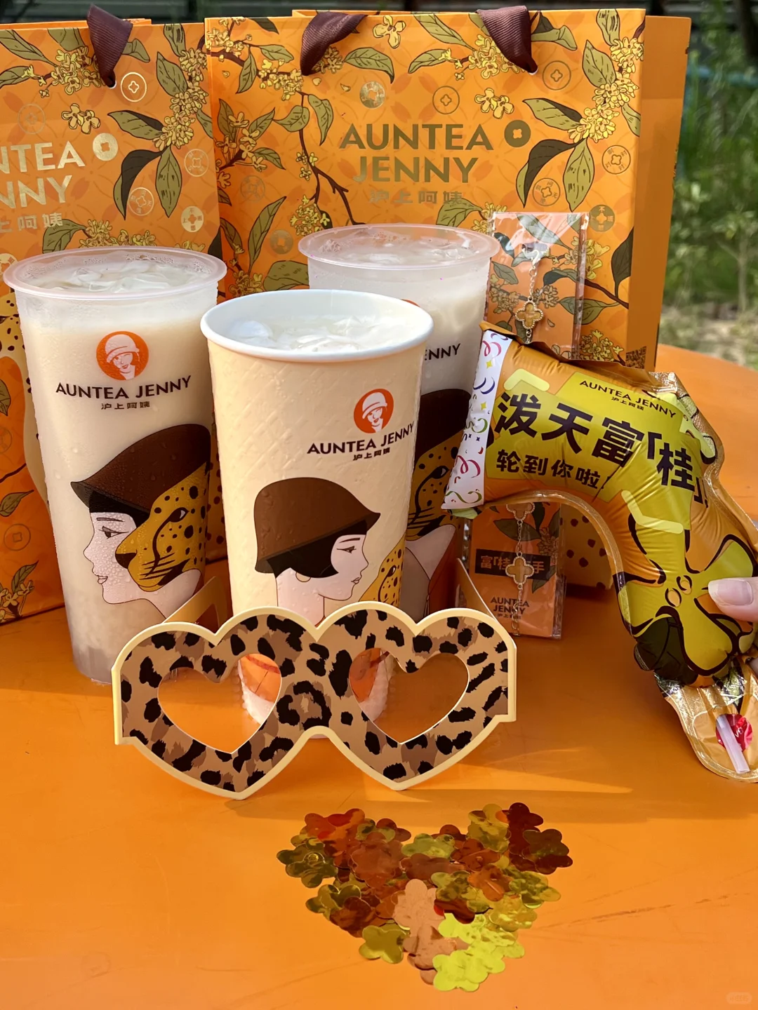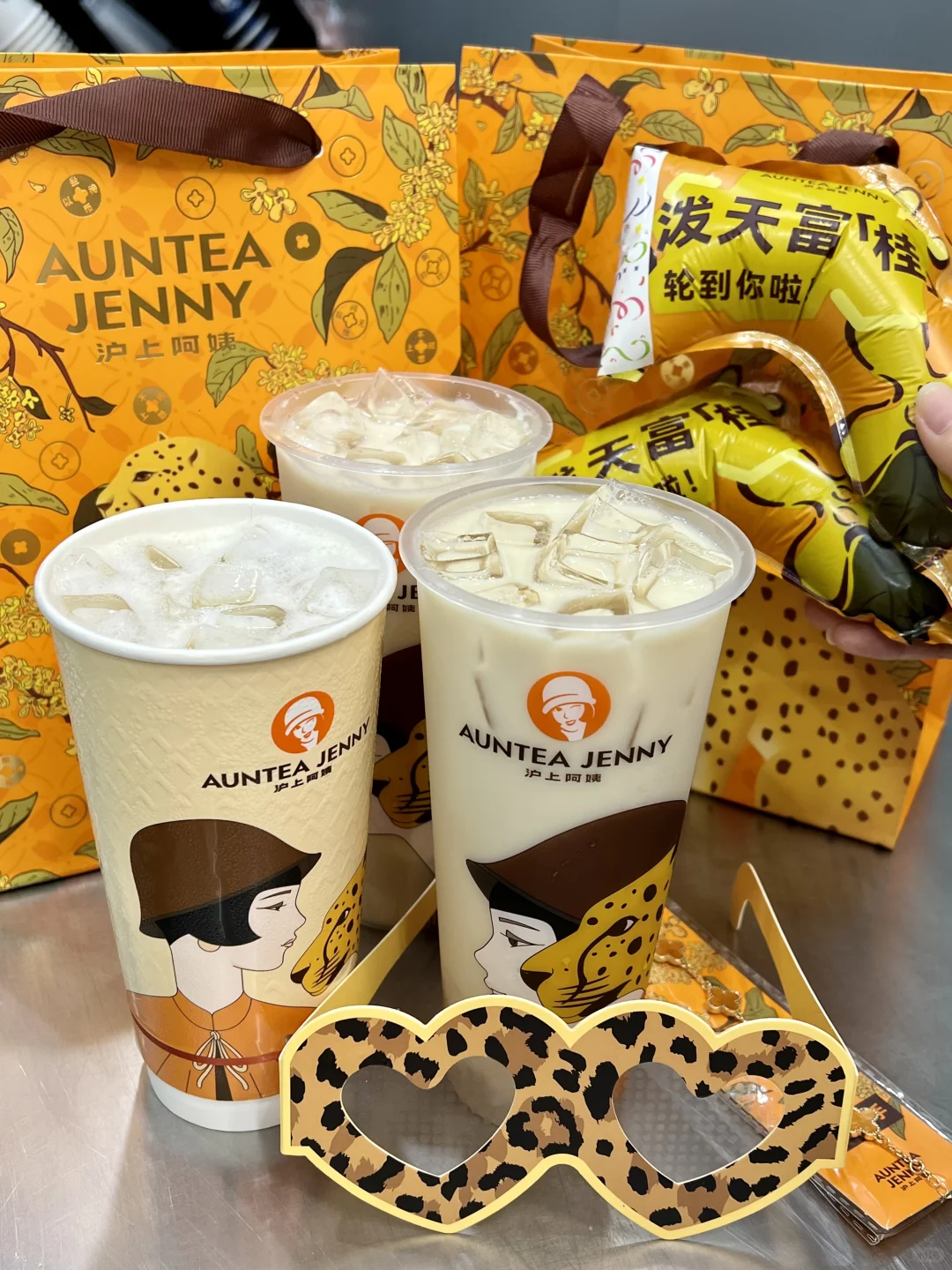 这次真的被沪上阿姨的新品富贵到了 提前感受到了秋天的富桂气息! 洗去了打工人一身的班味!! · ✔️富桂酒酿大福 软糯还能拉丝的米麻薯 加上香甜的酒酿,口感超丰富!! ✔️富桂酒酿芋圆 加入QQ糯糯小芋圆,超有嚼劲 配上酒酿和桂花香气,清爽回甘超好喝! ✔️泼天富桂 桂花新品一杯比一杯浓郁 真桂入茶,天然的花香超治愈~ · 秋天的第一杯奶茶,认定了沪上阿姨的桂花系列~