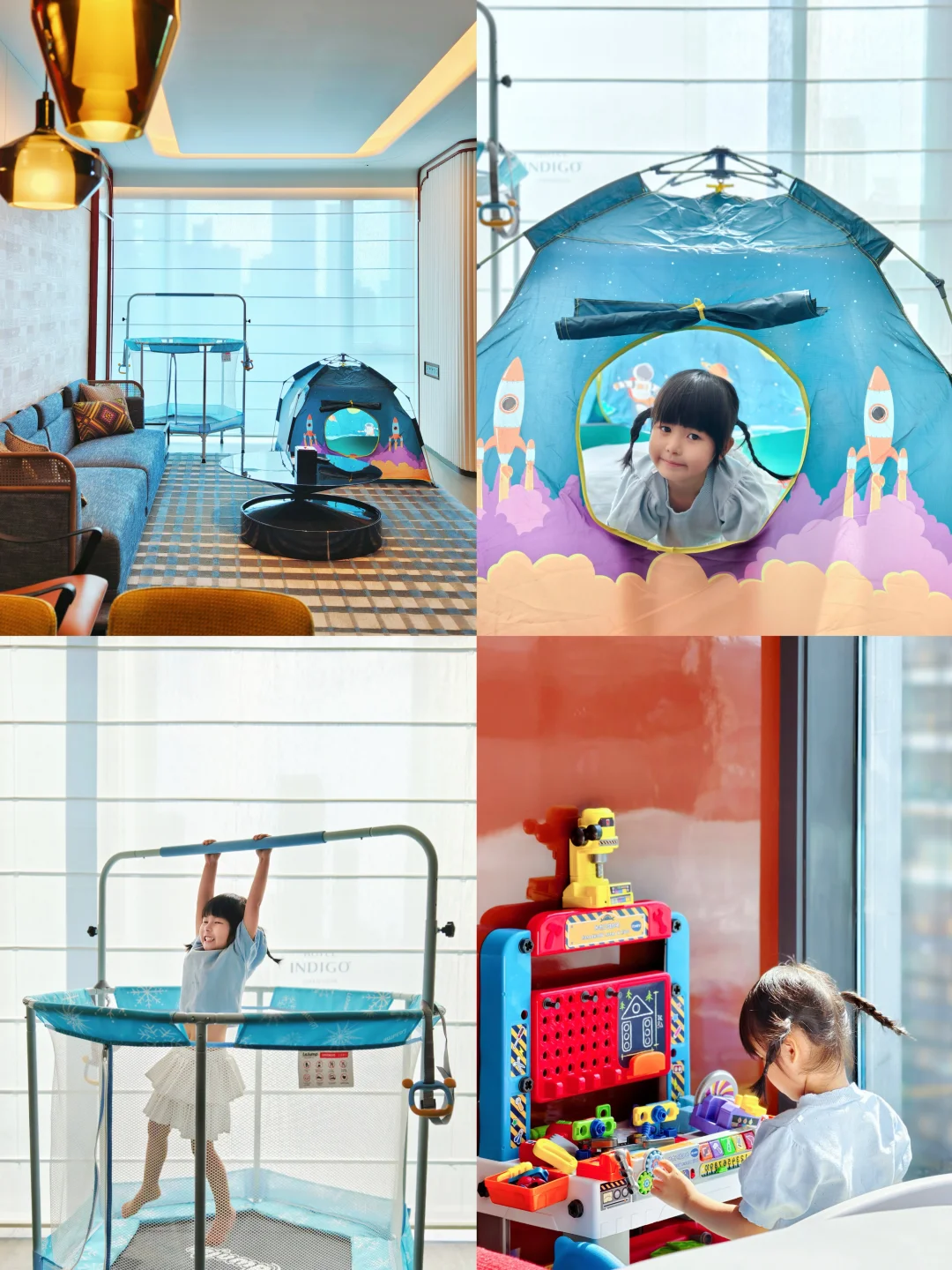 高空亲子套房,室内宽敞,儿童用品也配备齐全。蹦床、帐篷⛺️儿童玩具,小朋友好喜欢😘