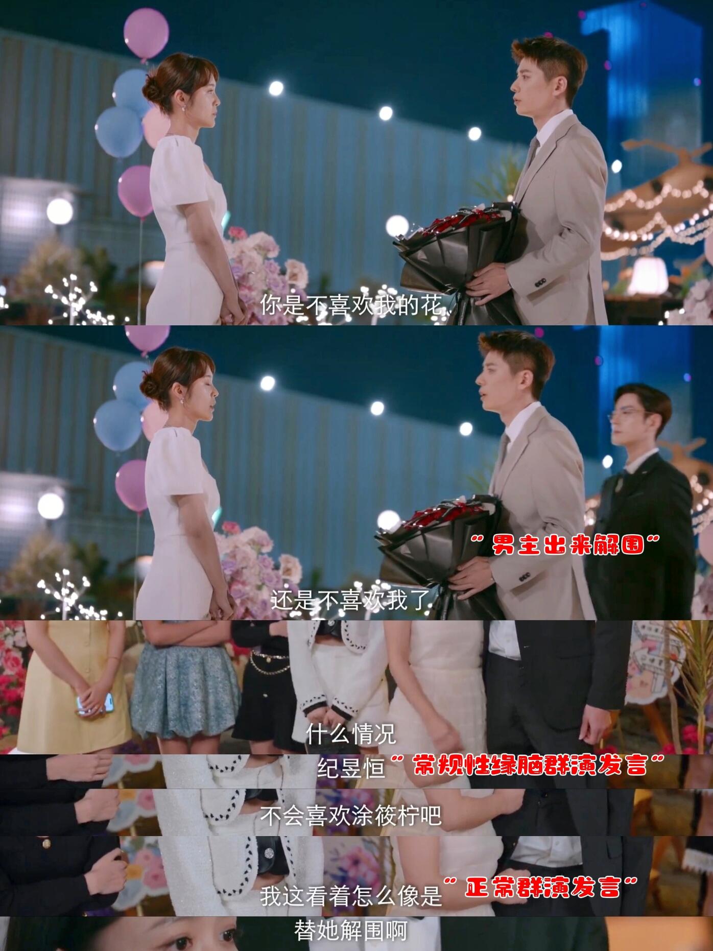 男主上前解围,出现了常规的性缘脑群众发言:他一定是喜欢她!但也有普通客观的视角群演发言“只是在解围而已”