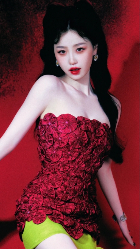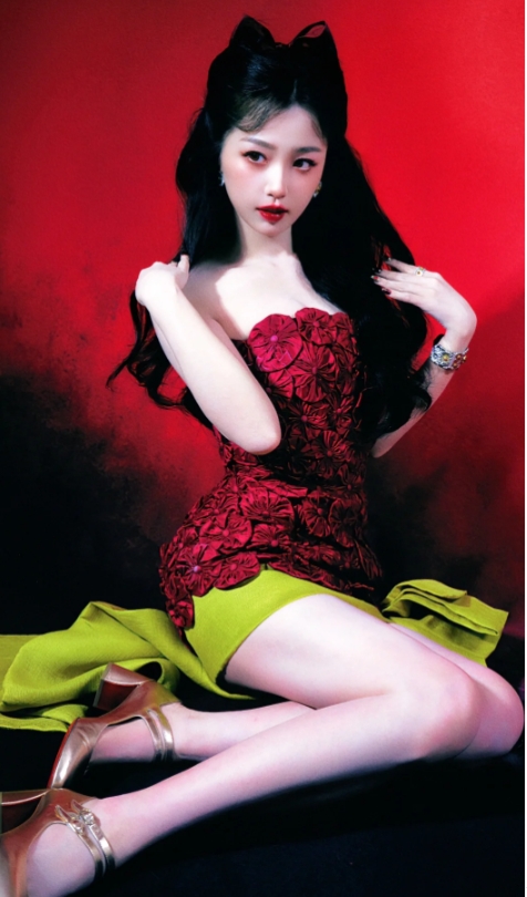 虞书欣的身姿曼妙,修长的玉颈下,肌肤如凝脂白玉,半遮半掩,素腰一束,竟不盈一握,每一个曲线、每一个轮廓都充满了女性的韵味。