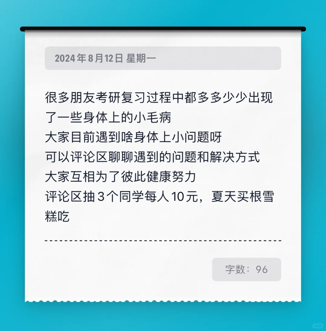 很多朋友考研复习过程中都多多少少出现了一些身体上的小毛病 大家目前遇到...